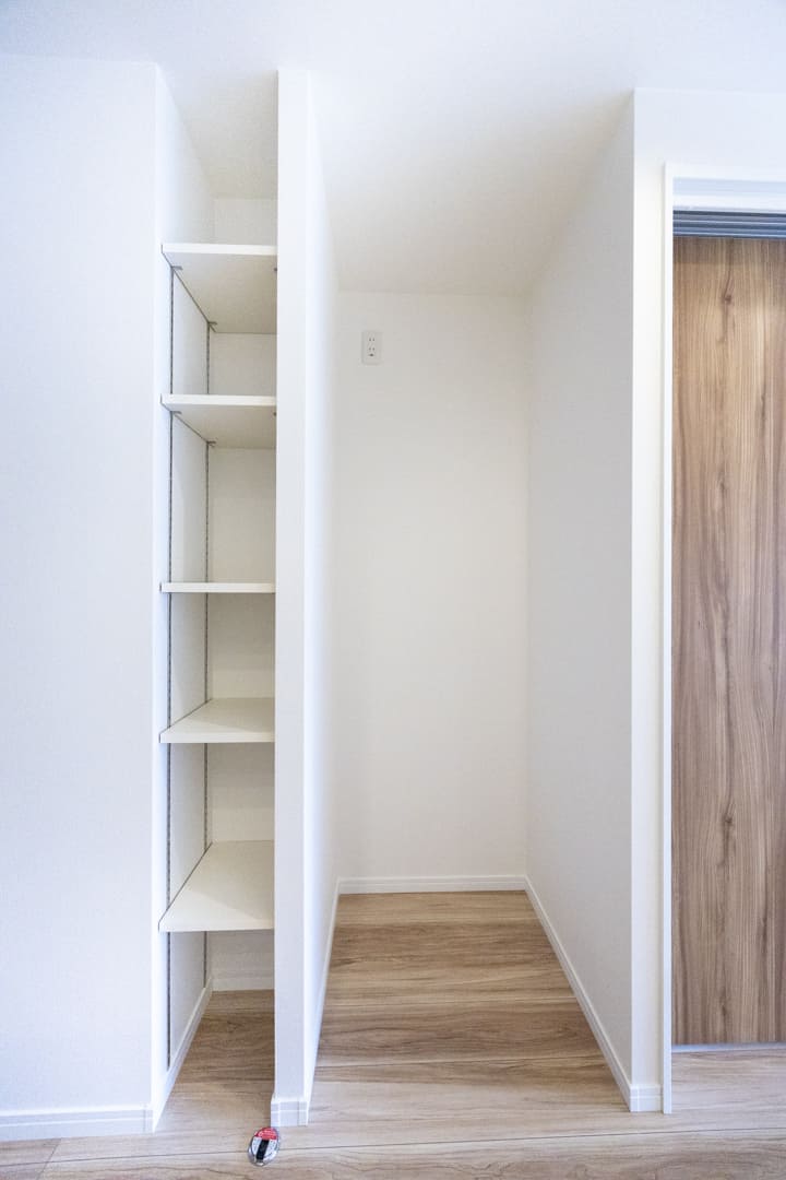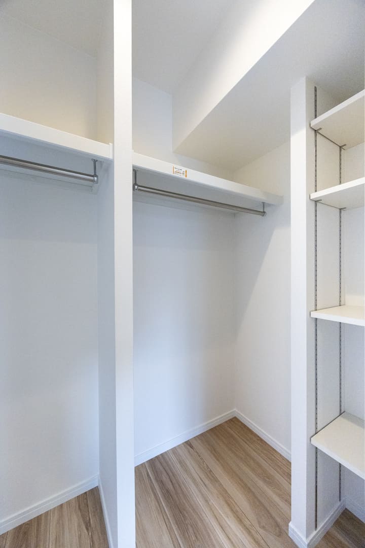 約5.0帖の洋室2は、玄関側に位置しており独立性があります。書斎や子ども部屋など、色々な使い方ができそうですよ。また、こちらのお部屋にもウォークインクローゼットが造られています。洋服や大きめの荷物も収納できて便利です。