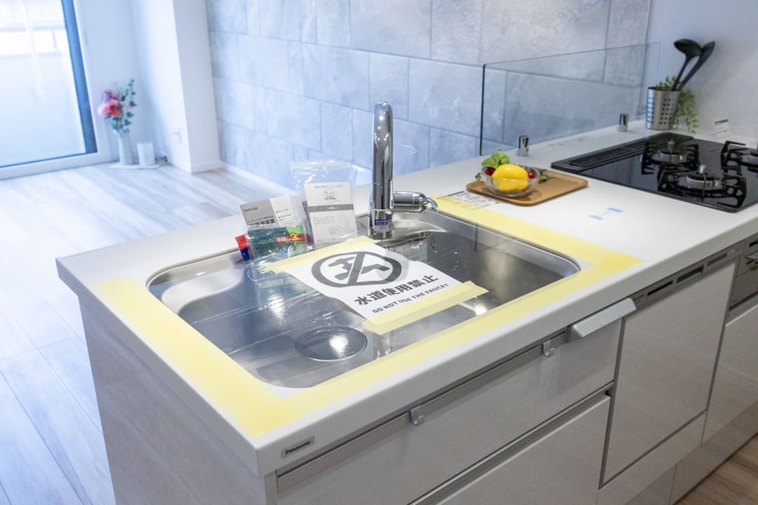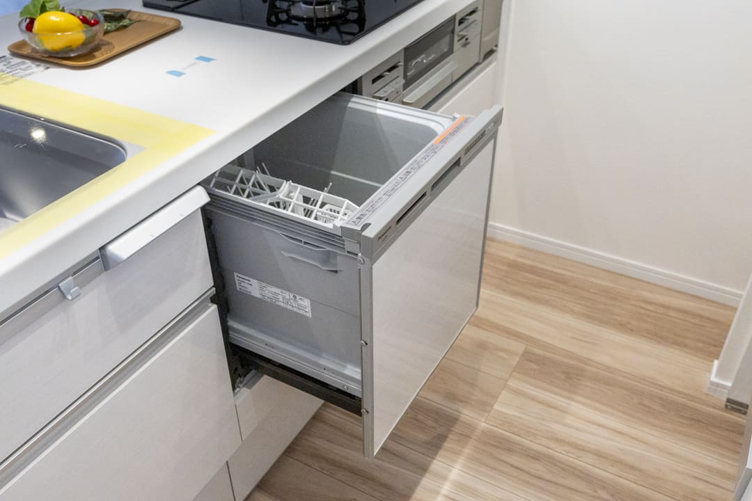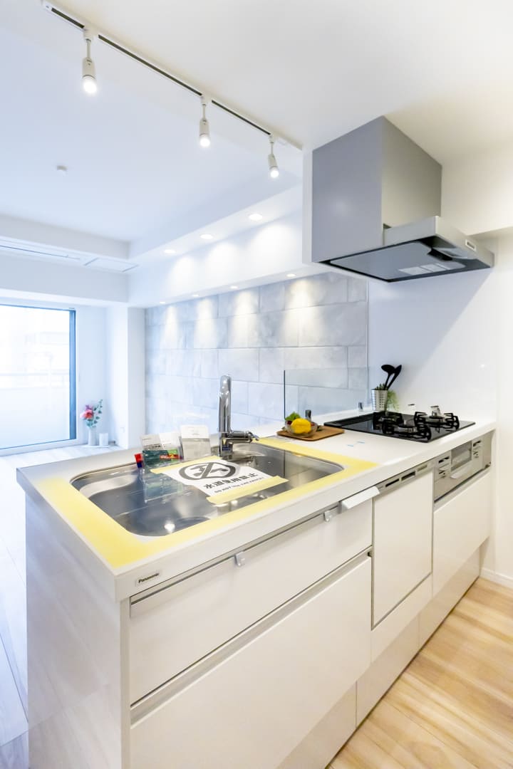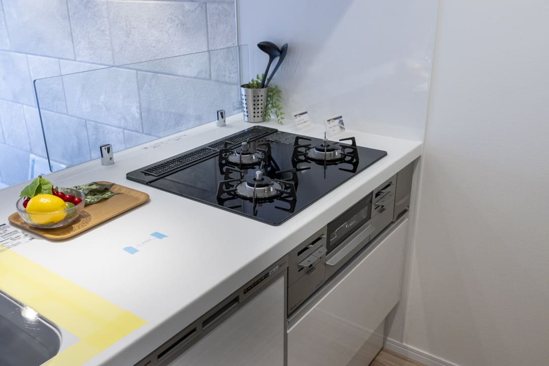 3口コンロ、グリル、食洗機付きと設備面も充実しています。シンクも広々としているので野菜などが洗いやすそうですよ。