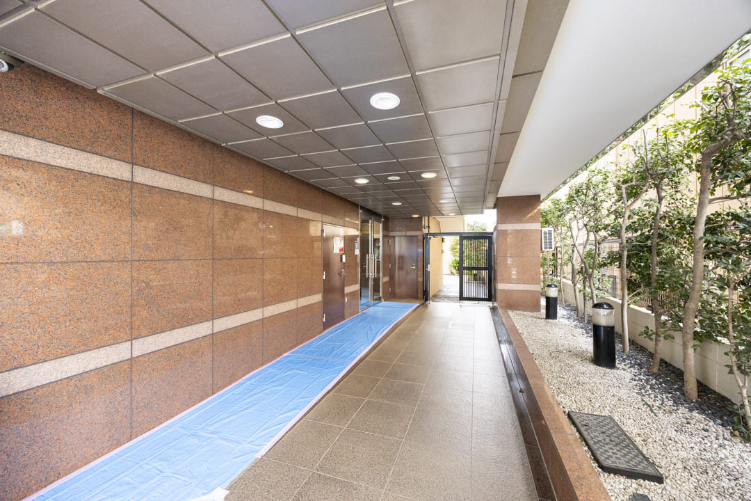 1995年(平成7年)8月竣工、総戸数28戸、鉄骨鉄筋コンクリート造、11階建てのマンションです。オートロック完備でセキュリティ面は安心。綺麗に整えられたアプローチが特徴的で、エントランス部分が外から見えないのも防犯面に配慮されています。また、駐車場はありませんが、駐輪場とバイク置場はつくられています。