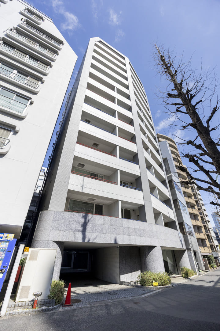 グレー基調のスタイリッシュな外観が印象的なマンション。2003年(平成15年)10月に竣工しました。鉄骨鉄筋コンクリート造地上13階建、総戸数は58戸です。エントランスは安心のオートロック体制です。宅配ボックスが設置されているので、外出が多くても荷物を受け取りやすくて助かります。24時間ゴミ出し可能なのも嬉しいですね。敷地内には駐車場と駐輪場を完備。空き状況は変動するのでお問い合わせください。細則はありますが、ペット飼育や楽器演奏も可能です。
