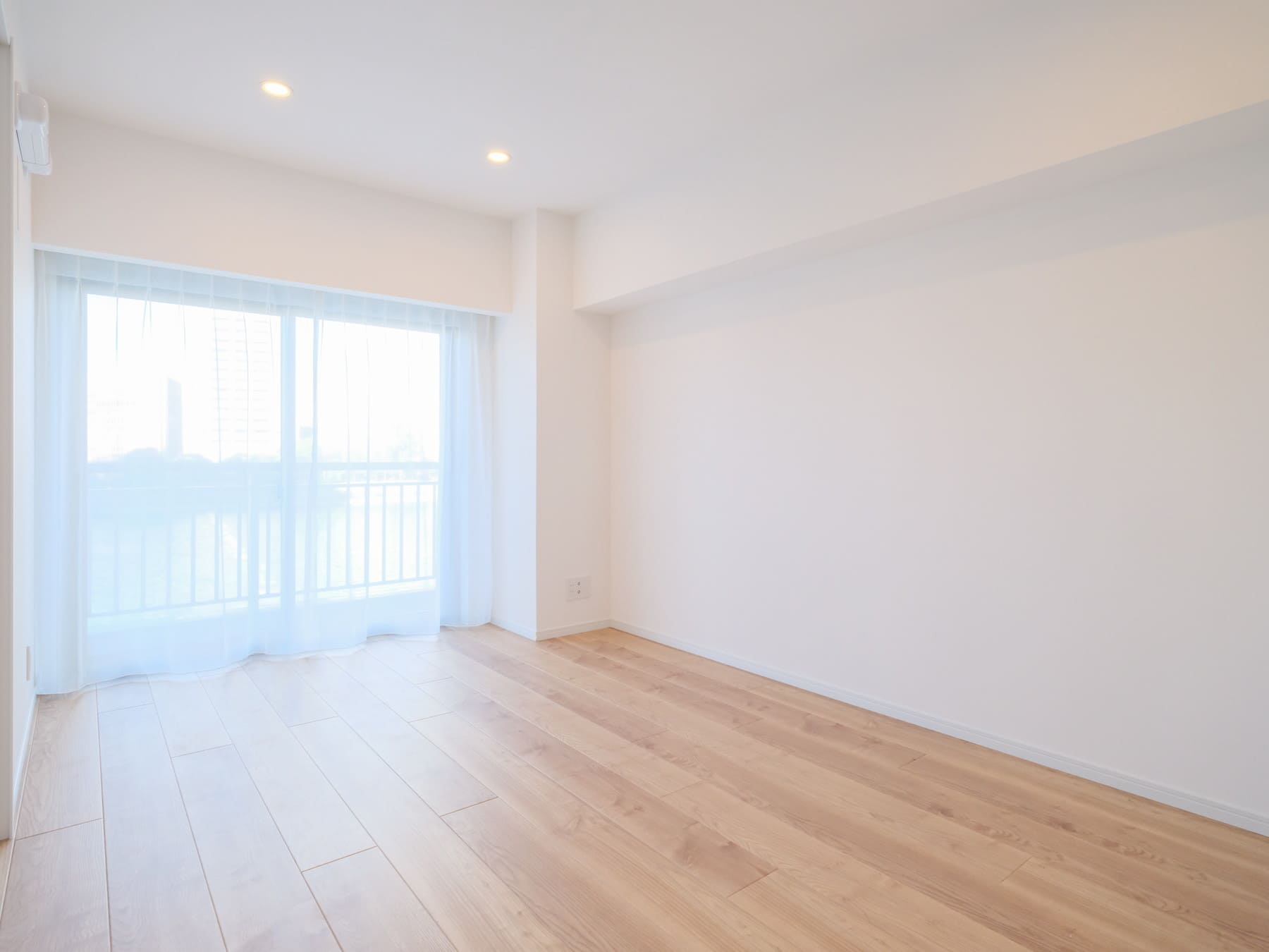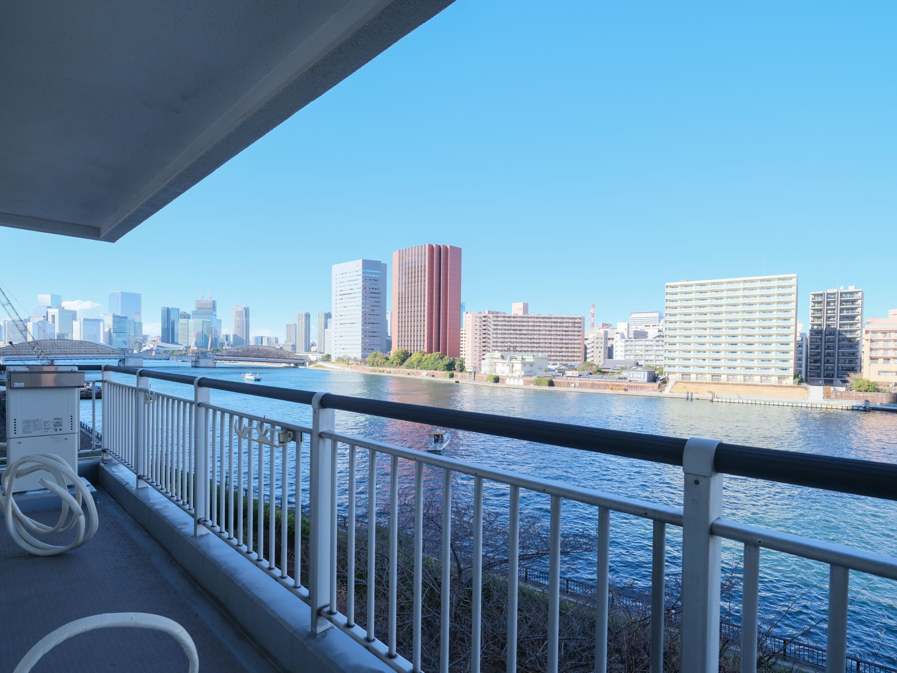 南東側と北西側の両方にバルコニーが造られており、風が吹き抜ける気持ちの良い空間となってます。北西側のバルコニーからは、隅田川を望むことができ、水と空のコントラストを楽しむことができます。都心でありながら、自然を感じることができて◎。
