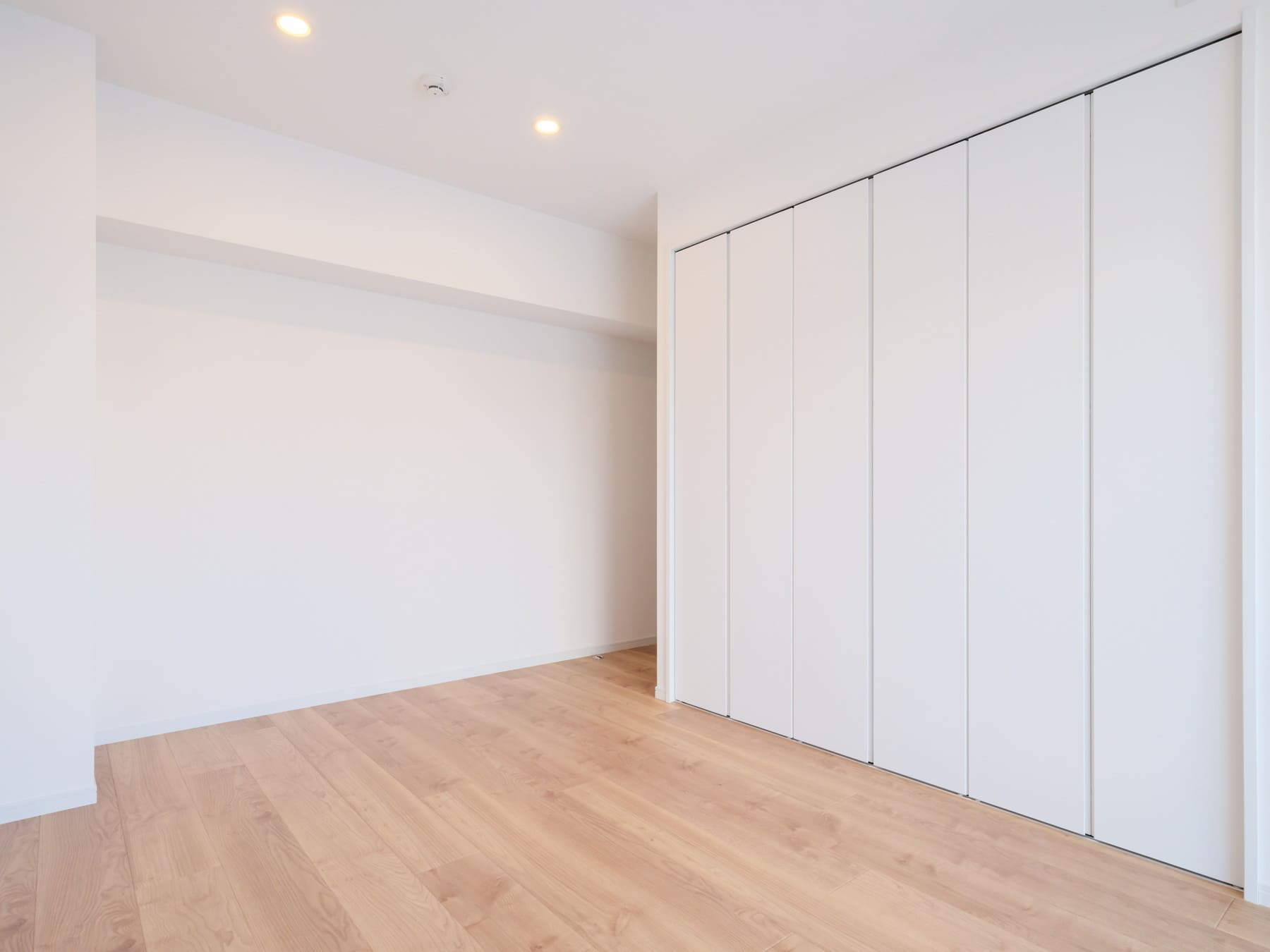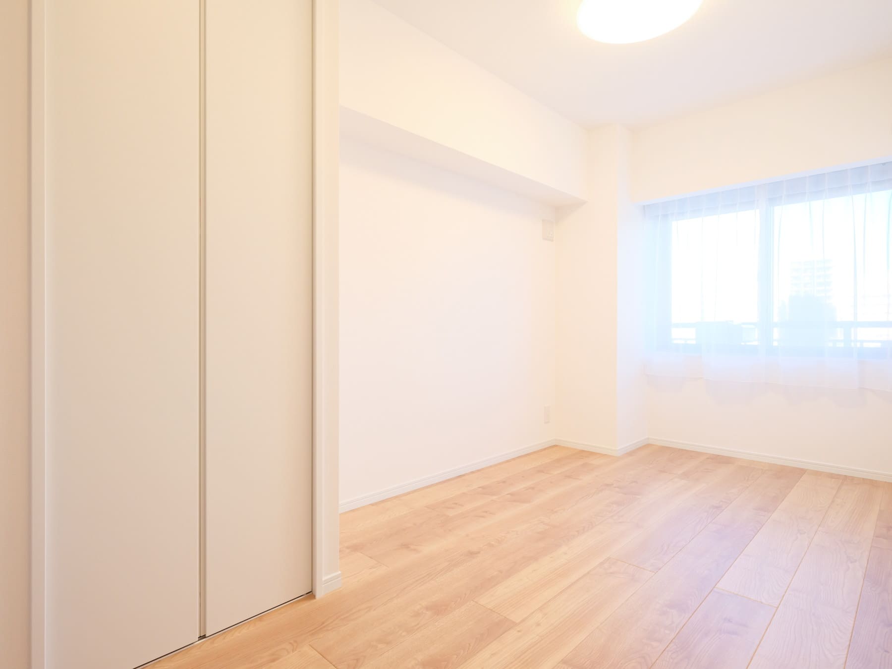 約7.8帖の洋室1は、ゆとりがあって主寝室に良さそうなお部屋です。開口部が広くて物の出し入れがしやすいクローゼットも完備。過ごしやすい空間となっています。窓からは北西側のバルコニーにアクセスができます。
