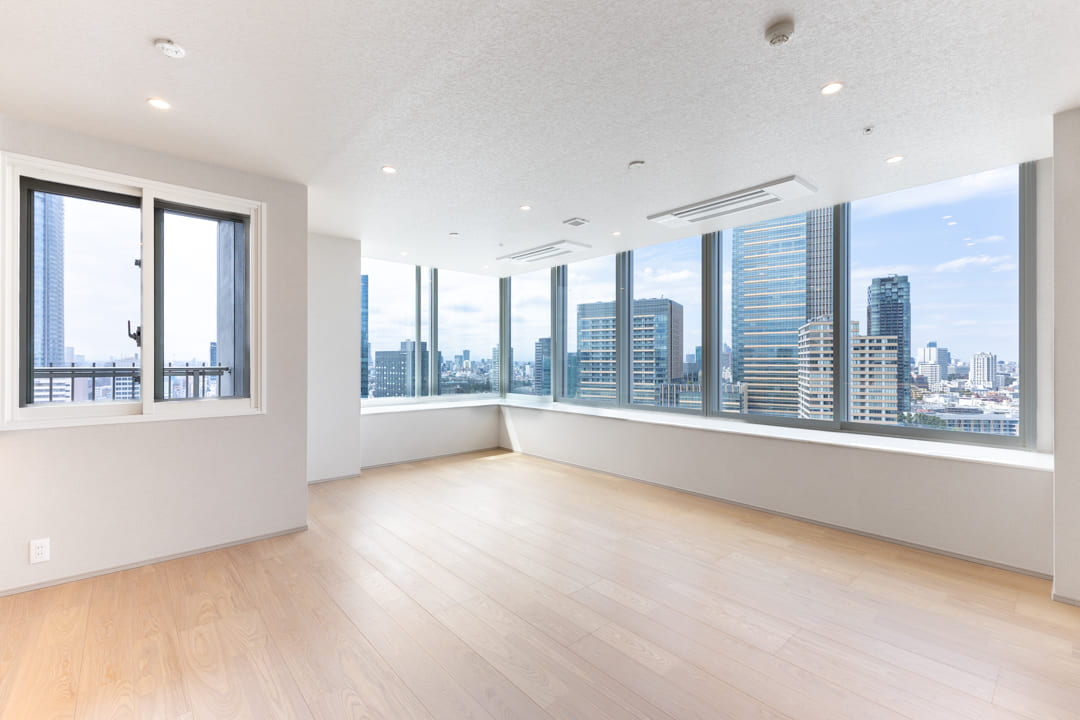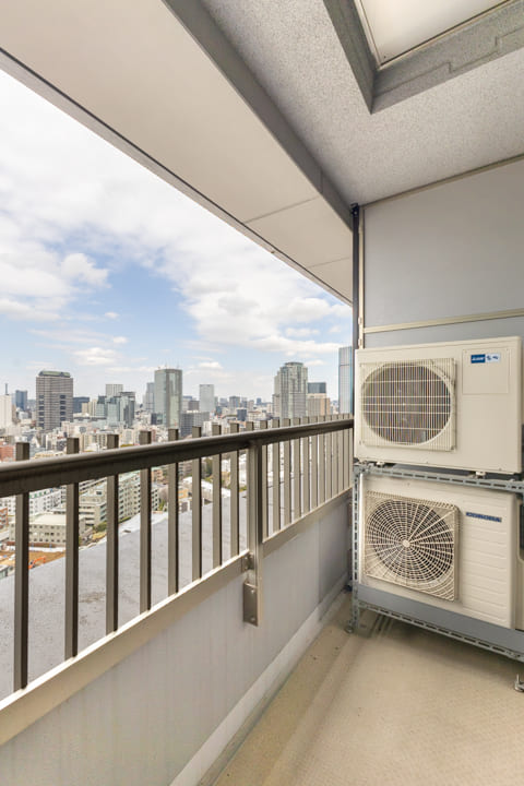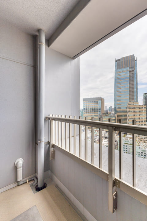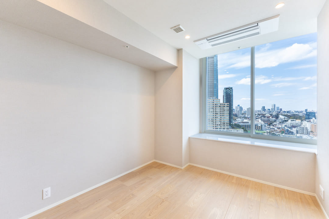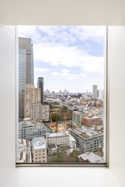 バルコニーは2ヶ所に設けられ、合計9.01㎡の広さ。25階部分ならではの開放的な眺望が広がります。六本木ヒルズや東京ミッドタウンを望み、北西側には木々の緑も感じられる景色。都心のダイナミックな景観とやわらかな緑を同時に楽しめる、思わずほっと一息つきたくなるロケーションです。寝室側には二重サッシを採用し、防音・断熱効果が期待できるのもポイントです。