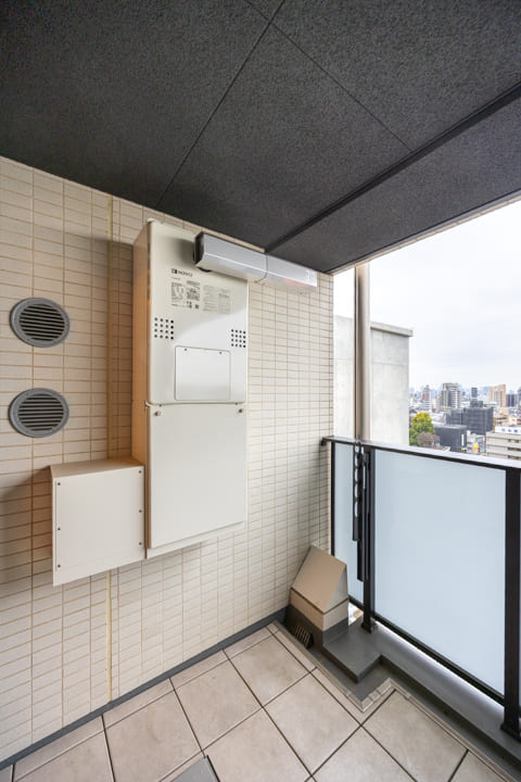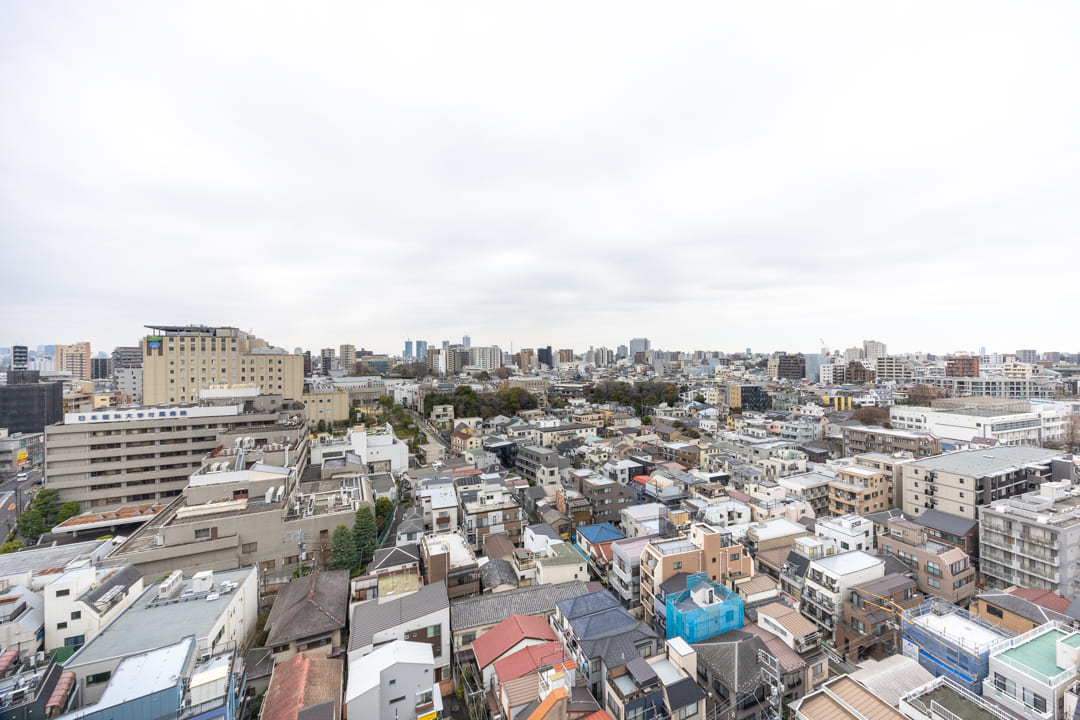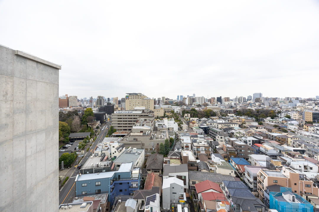 バルコニーは3.88㎡とコンパクトながら、最上階ならではの開放的な眺望が広がります。撮影日はあいにくの天候でしたが、遠くまで視界が抜け、広がる空を感じることができました。都心にいながら、ふっと気持ちを解きほぐせるような場所となりそうです。