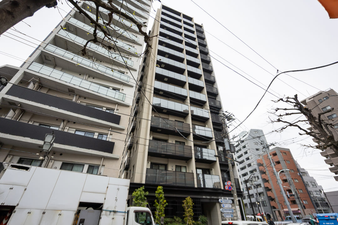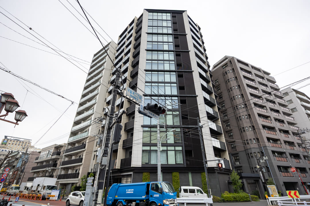 2017年(平成29年)10月竣工、野村不動産(株)旧分譲の「プラウド文京千駄木」。鉄筋コンクリート造地上14階建、総戸数78戸のレジデンスです。自然石とガラスを使用したスタイリッシュな外観が印象的。エントランスにはオートロックを備え、不在時に便利な宅配ボックスも設置されています。共用部はホテルライクな内廊下設計で、天候の影響を受けにくく、プライバシーにも配慮されています。細則はありますが、ペットの飼育が可能です。