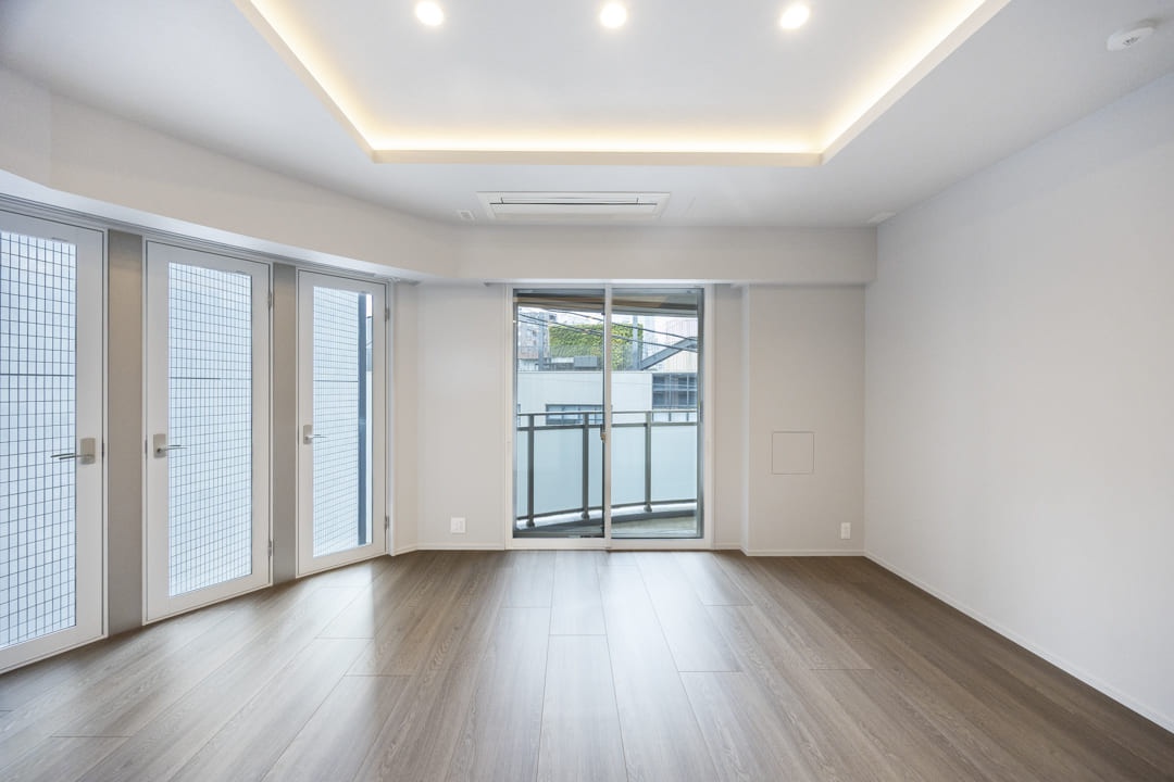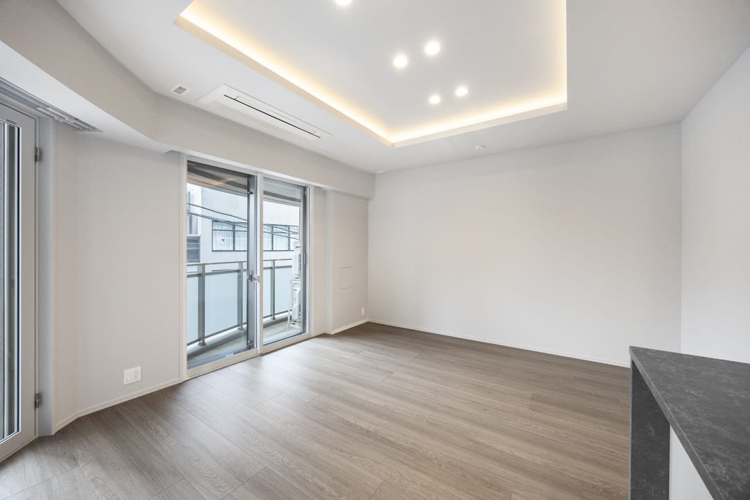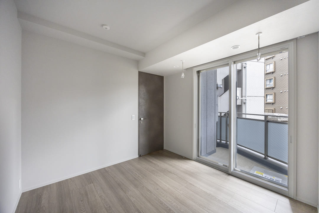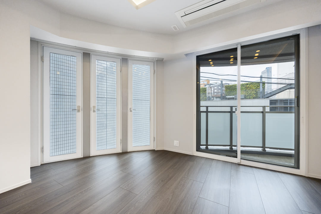 バルコニーはLDKと寝室1の2ヶ所に設けられています。コンパクトながら、それぞれの空間に光と風を取り込む設計。眺望は都心らしい景色が中心ですが、LDK側は抜けも感じられ、圧迫感を抑えた落ち着きのある眺めです。防音・断熱性に優れた二重サッシが採用されているのも嬉しいポイントです。