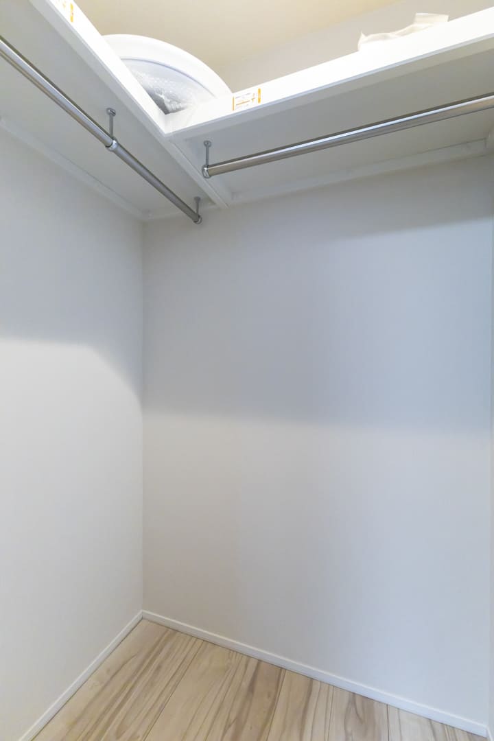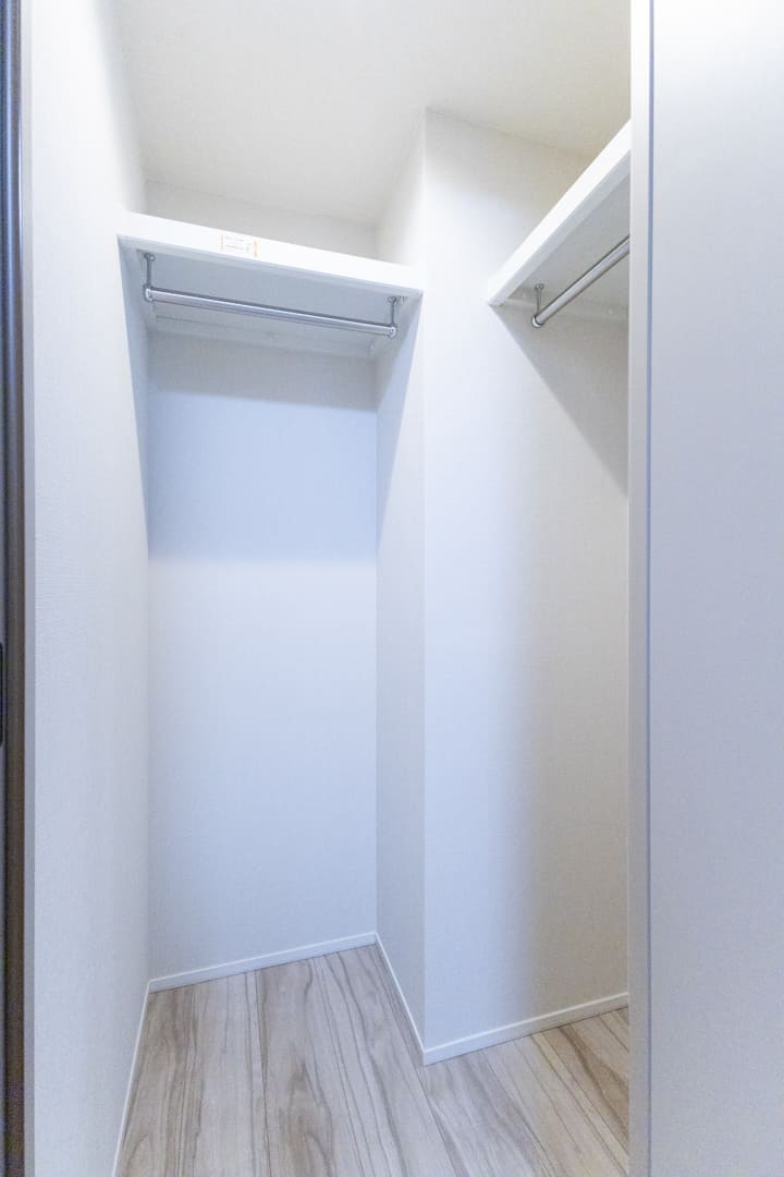 約4.5帖の洋室2。三面窓から光が差し込み、コンパクトながら広がりを感じられる一室です。WIC(ウォークインクローゼット)を備え、収納力も確保。トランクケースやゴルフバッグなどの大きな荷物もすっきり収まり、居室を有効に使えます。ワークスペースや趣味のお部屋としてもおすすめです。