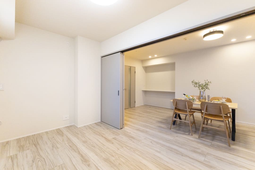 お隣にあるのは約5.6帖の洋室3。LDKとは引き戸で仕切られているため、シーンに合わせてフレキシブルに活用できます。扉を開放して拡張リビングにしたり、閉めてワークスペースやプライベート空間にしたり。ライフスタイルやシーンに合わせて使い分けてください。