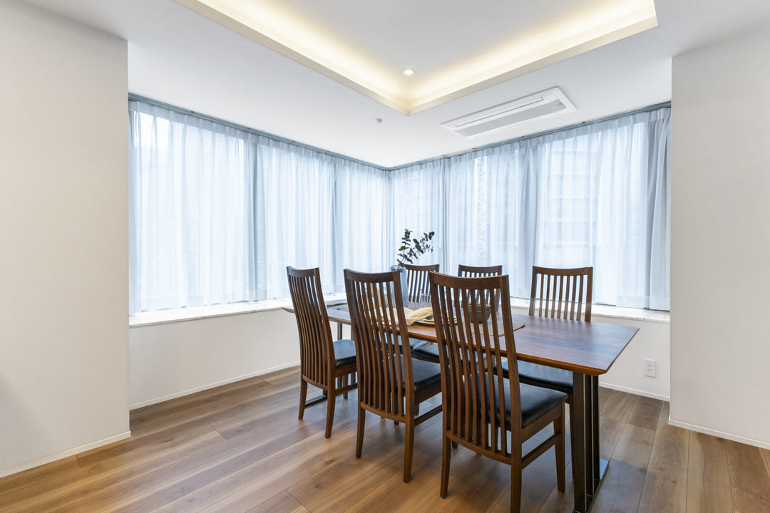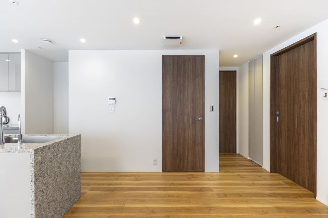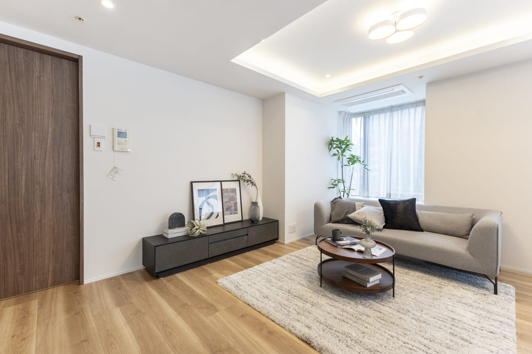 木目の美しさが際立つフローリングを採用した、ナチュラルで洗練された内装。素材感を活かした仕上げに、天井の間接照明がやわらかな陰影を添え、落ち着いた雰囲気を演出します。主張を抑えた色調のため、北欧・モダン・シンプルなど多様なテイストと調和しやすく、インテリアのコーディネートも楽しめます。