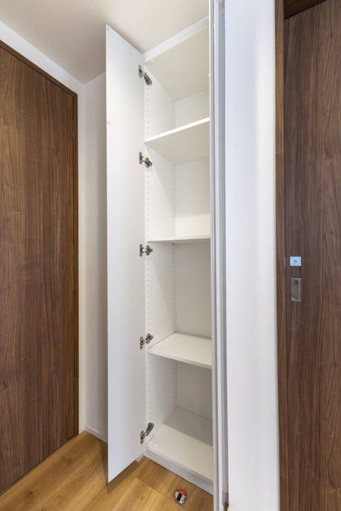 納戸と可動棚を備えた収納豊富なプラン。日用品から掃除機や季節家電まで収まり、すっきりとした住空間を実現できます。