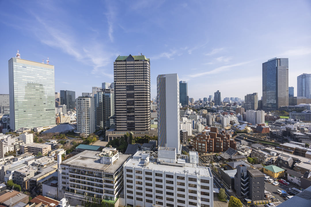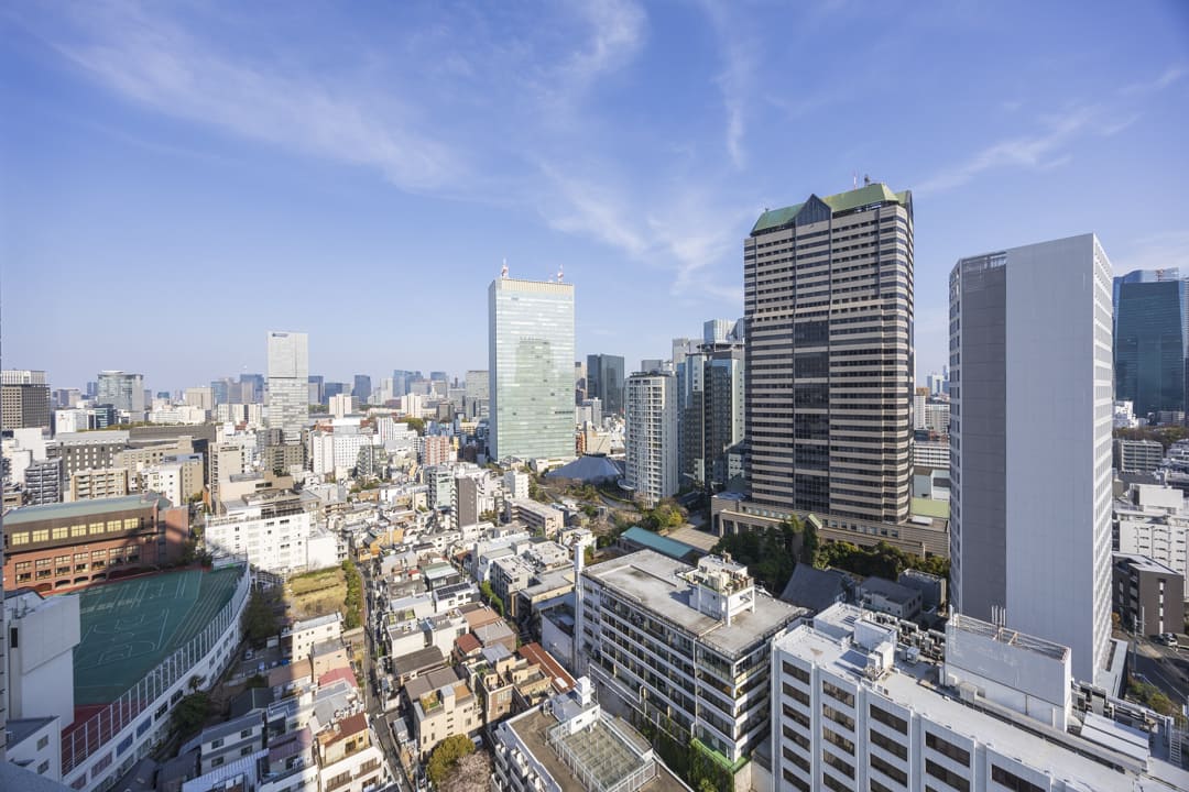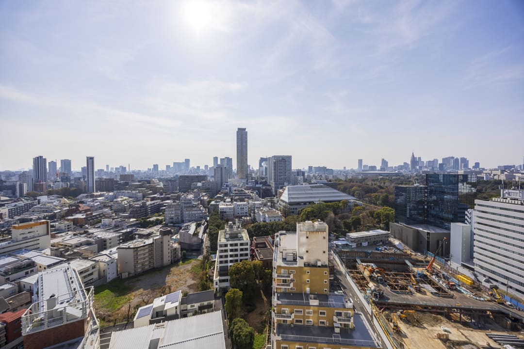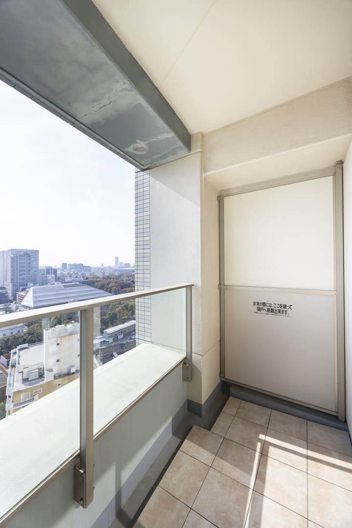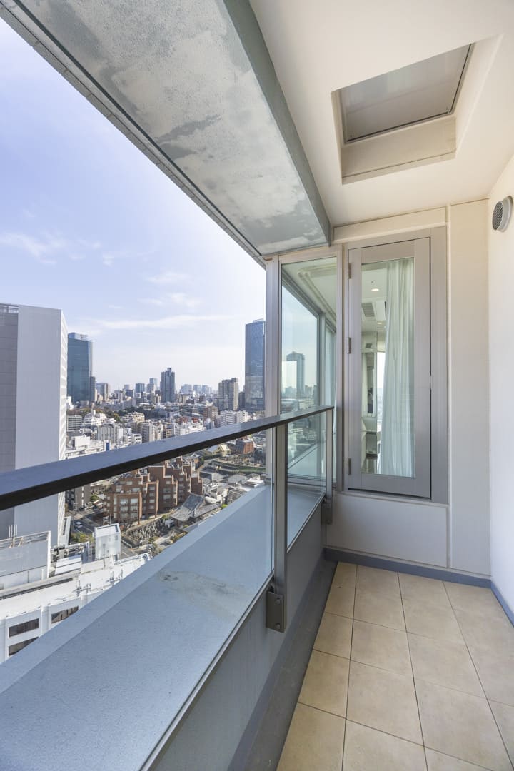 南西向きのバルコニーです。日当たりが良好で、都市を掌中に収めるかのような眺望を堪能できます。さらに、赤坂御苑や明治神宮外苑の緑も感じて◎。
