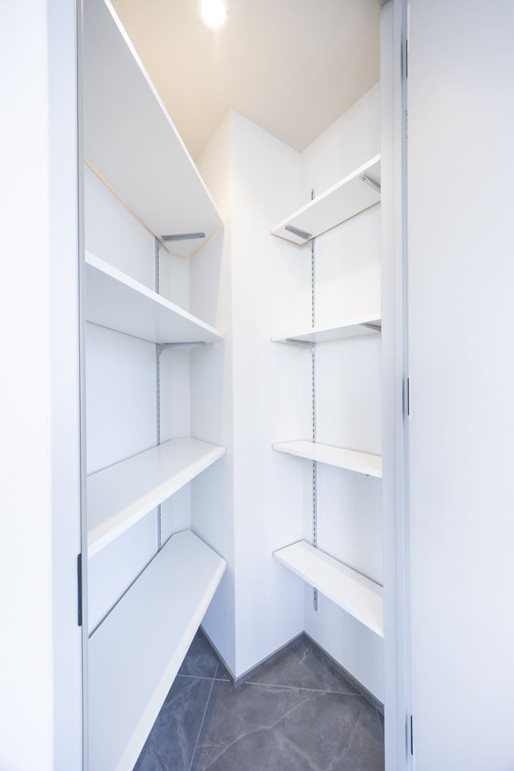 キッチンは、動きに無駄が出にくく作業がしやすいL字型を採用。調理スペースや収納にもゆとりがあり、日々の家事を快適にサポートします。独立性があるので、生活感が出やすいキッチンまわりをさりげなく目隠しすることができますよ。