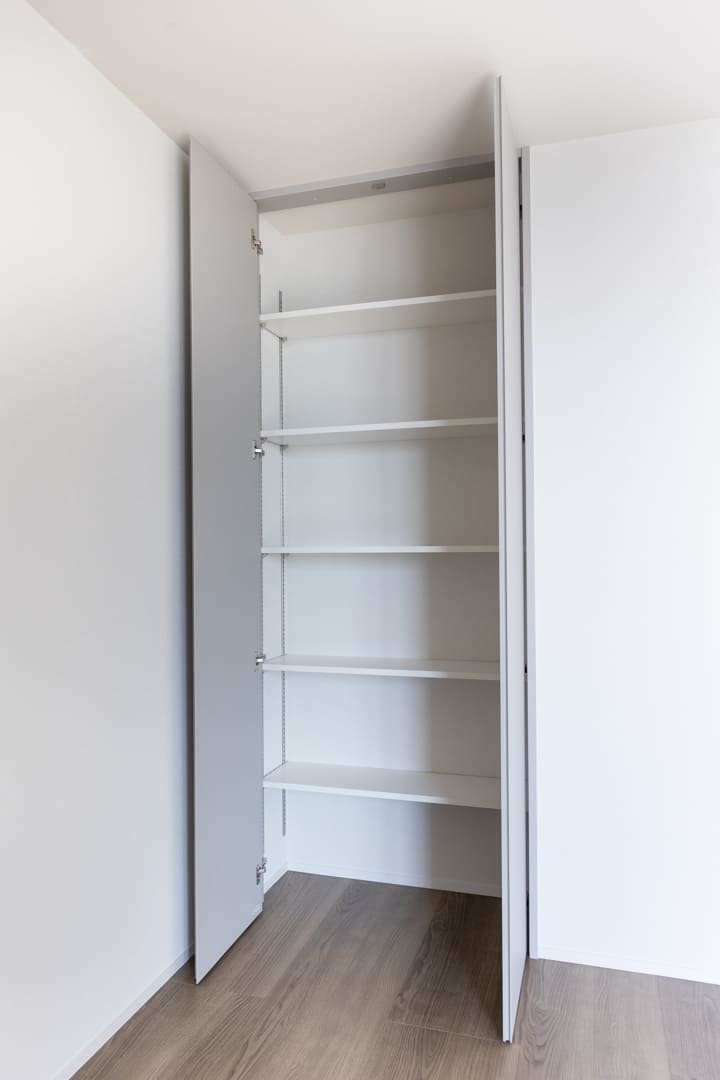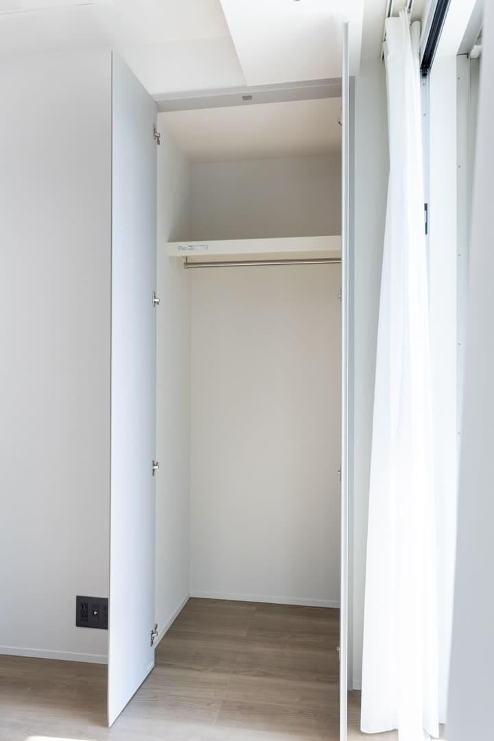 約6.5帖の寝室は、ベッドルームとしてはもちろん、静かに思索を深める書斎や、大切な時間を楽しむ趣味の空間、リモートワークにもふさわしい一室。ライフスタイルに寄り添いながら、自在にお使いいただけます。また、収納スペースが2ヶ所も造られています。