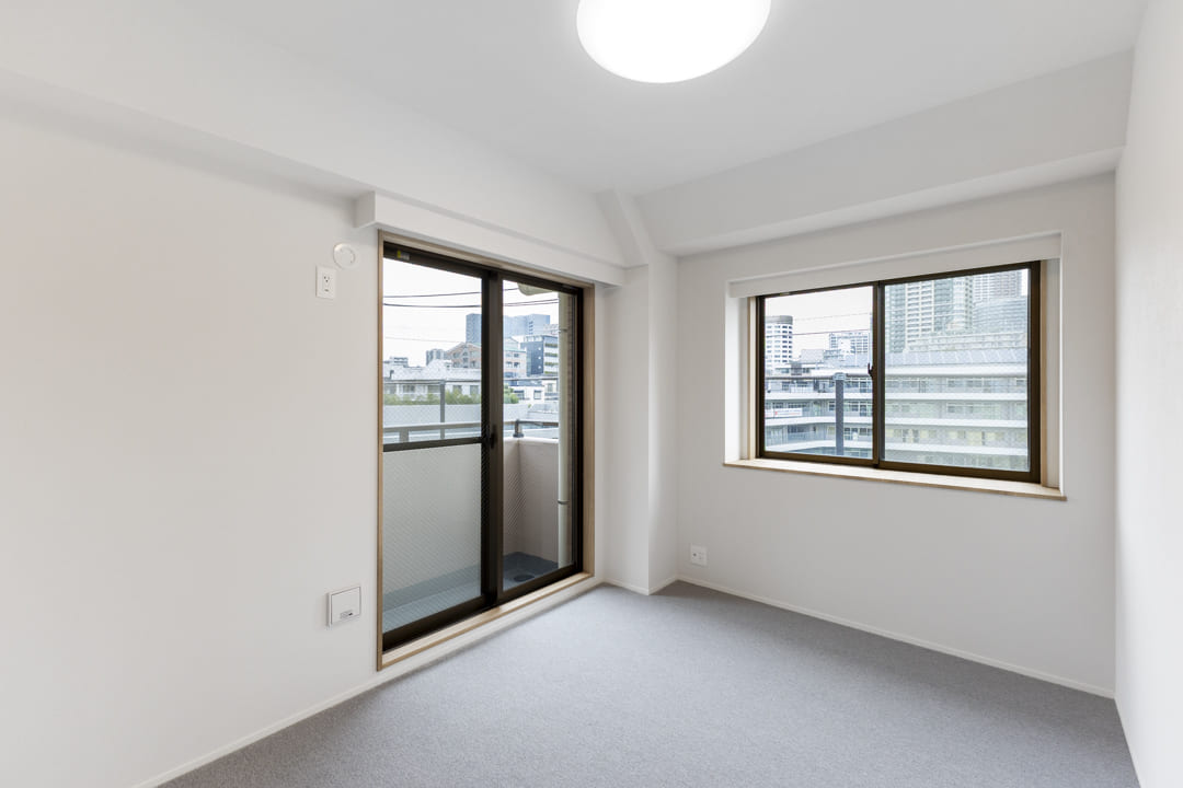 約5.2帖の洋室1。北西・北東の二面採光により、やわらかな光が差し込みます。LDKから離れた独立性の高い配置で、落ち着いて過ごせる一室。主寝室におすすめです。