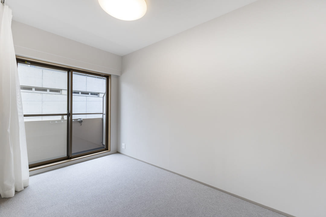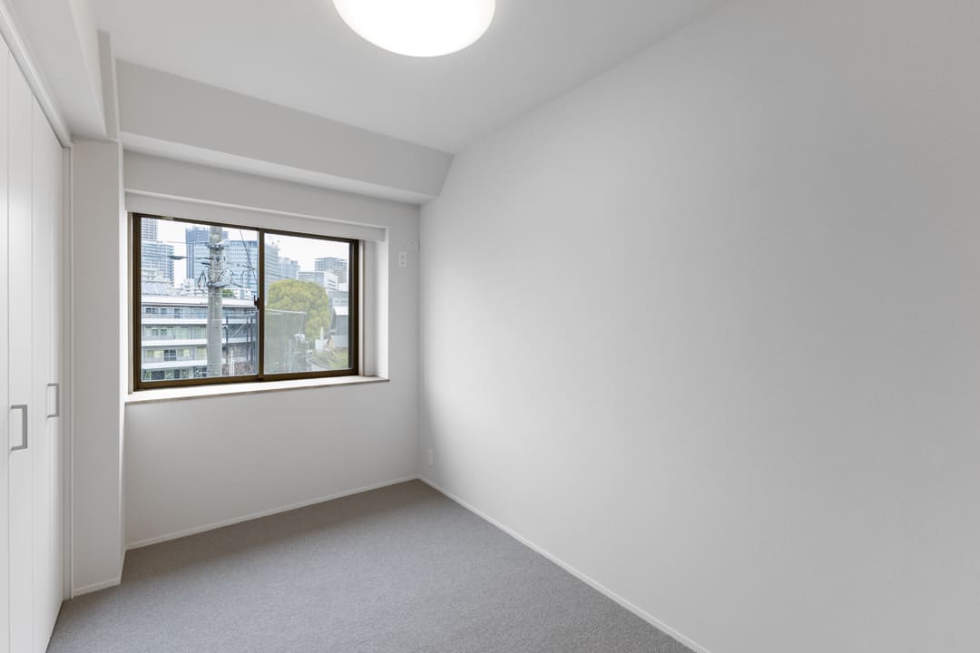 約4.3帖の洋室2。北東向きの窓とクローゼットを備えた、使い勝手の良い一室です。出窓にはお気に入りの小物を飾ることができ、インテリアを楽しめるのも魅力。寝室としてはもちろん、ワークスペースや趣味部屋としてもおすすめです。