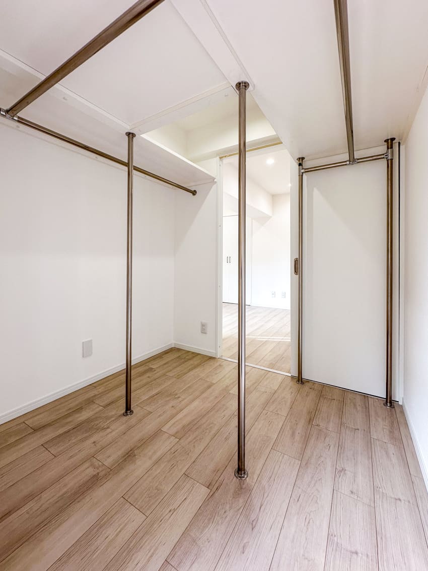 約7.7帖の寝室2は独立性があって子ども部屋に良さそうな空間です。奥行きがあるウォークインクローゼット付きのため、洋服や大きめの荷物もすっきりと収納することができます。居住スペースをより有効的に使えて嬉しいですね。