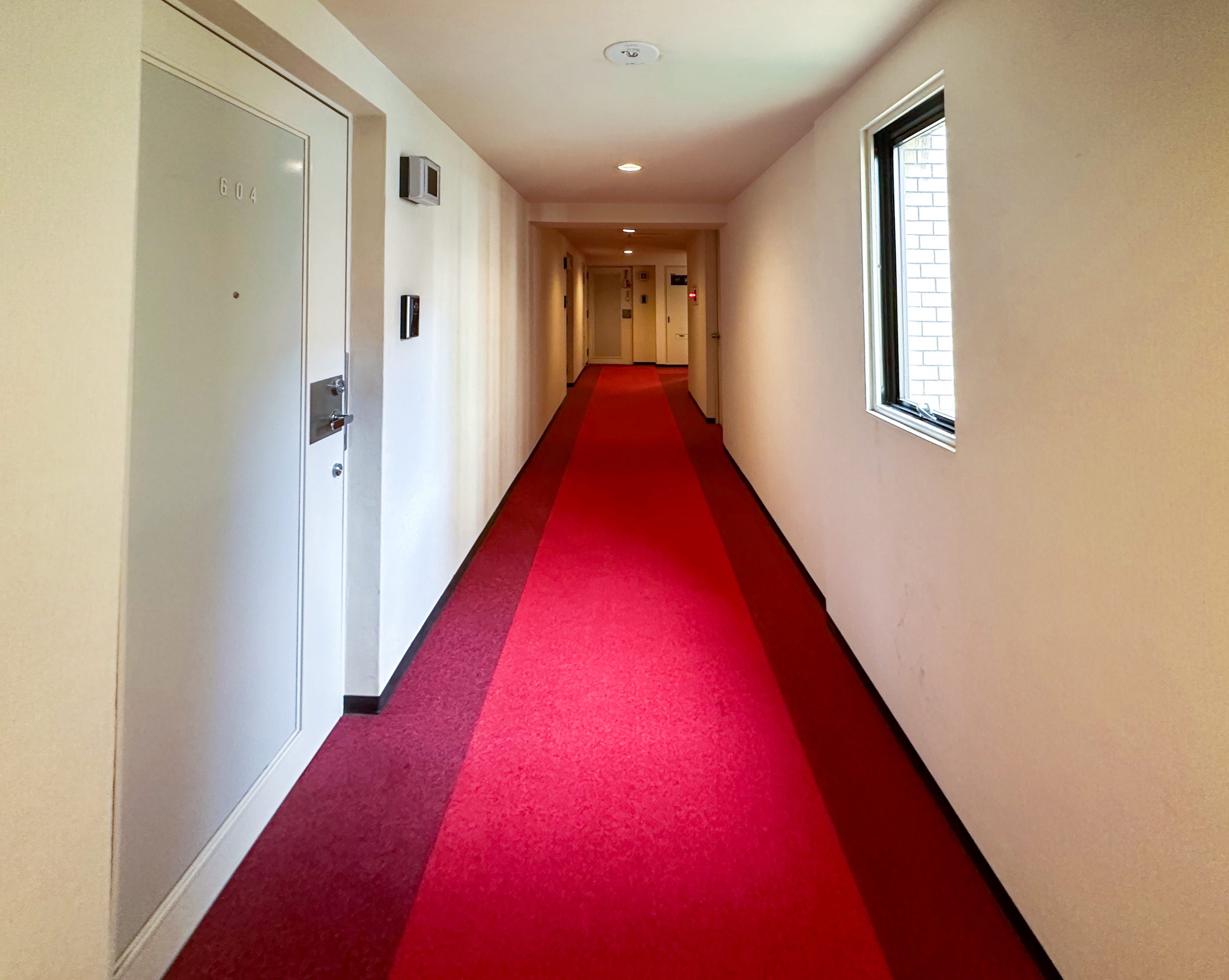 1980年(昭和55年)12月に竣工した鉄骨鉄筋コンクリート造のマンション。地上8階建、総戸数は42戸です。オートロック完備・管理人さん住込み管理体制でセキュリティ面は安心です。趣のあるエントランスにはテーブル&チェアが置かれていて、待ち合わせやちょっとした来客対応に便利。分譲平置き駐車場、無償で使用できる駐輪場付きなのも嬉しいポイントです。細則はありますが、ペットの飼育が可能です。