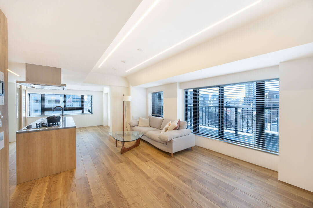 東京メトロ南北線・都営大江戸線「麻布十番」駅から徒歩4分。今回ご紹介する物件は約77㎡の2SLDKです。ユナイテッドアローズ監修のリノベーションで、シンプルでありながらお洒落な要素が散りばめられた印象深い空間です。LDKは約22帖で家族や友人と時間と共有できるゆとりある広さです。全居室南向きのワイドスパン設計で自然が感じられる心地よい住戸です。