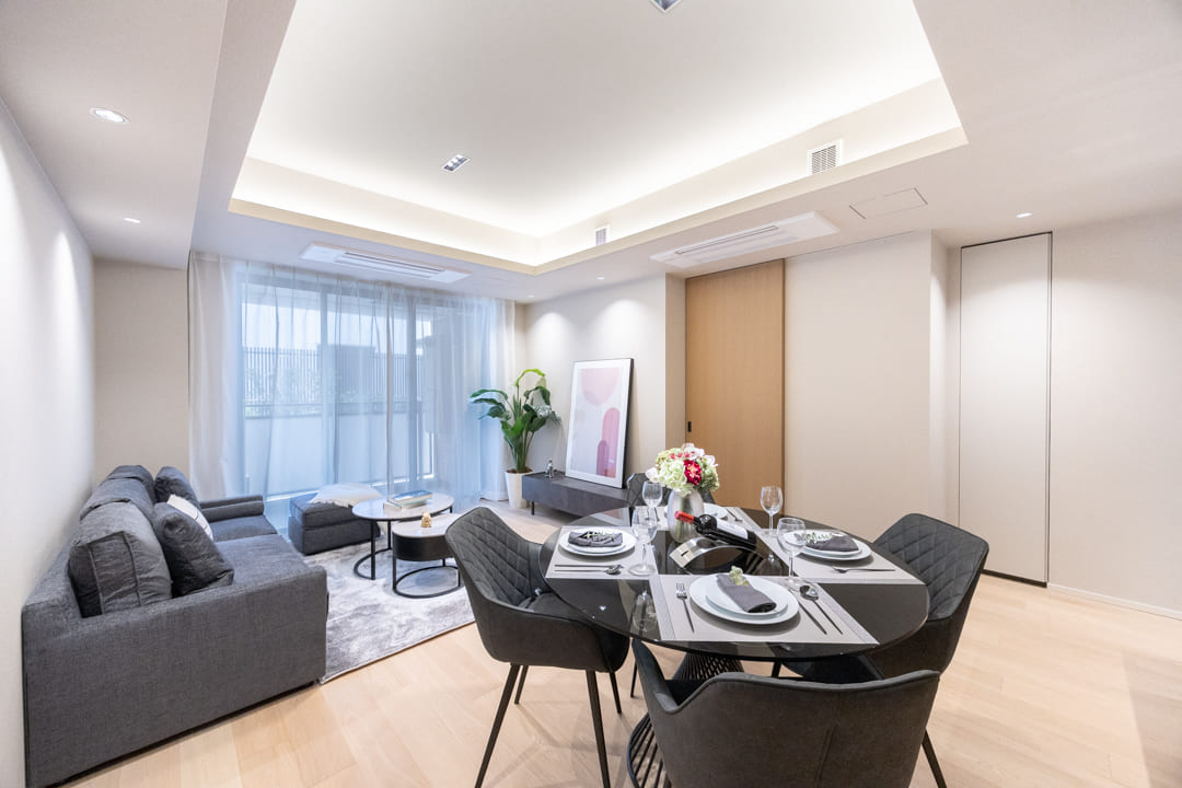 千代田区六番町の落ち着いた街並みに調和する「ザ・パークハウス千代田六番町」。2025年8月に竣工した本レジデンスは、三菱地所レジデンスが手がける「ザ・パークハウス」シリーズの中でも、立地や設えにこだわりが感じられる一棟です。ご紹介するのは、新築未入居の3LDK。専有面積約95㎡のゆとりある角住戸で、南西向きのため、やわらかな陽光と心地よい風が室内を満たします。LDおよび各居室の天井高は棟内最大を誇る約2,700mmを確保しており、空間に伸びやかな広がりをもたらしています。日常のひとときを、ゆったりとした空気感の中でお過ごしいただける住まいです。