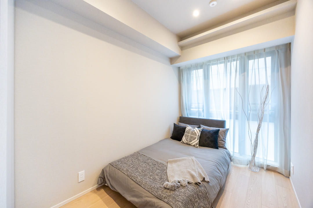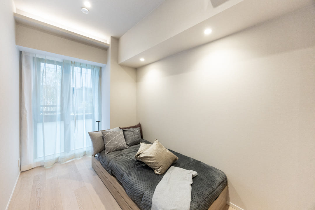 約5.0帖の寝室2です。寝室としての落ち着きに加え、デスクを置けば静かなワークスペースへと表情を変えます。趣味の道具を並べたり、読書に没頭したりと、使い方は思いのまま。変化するライフスタイルに柔軟に寄り添い、心地よい時間を紡ぎ出してくれる一室です。