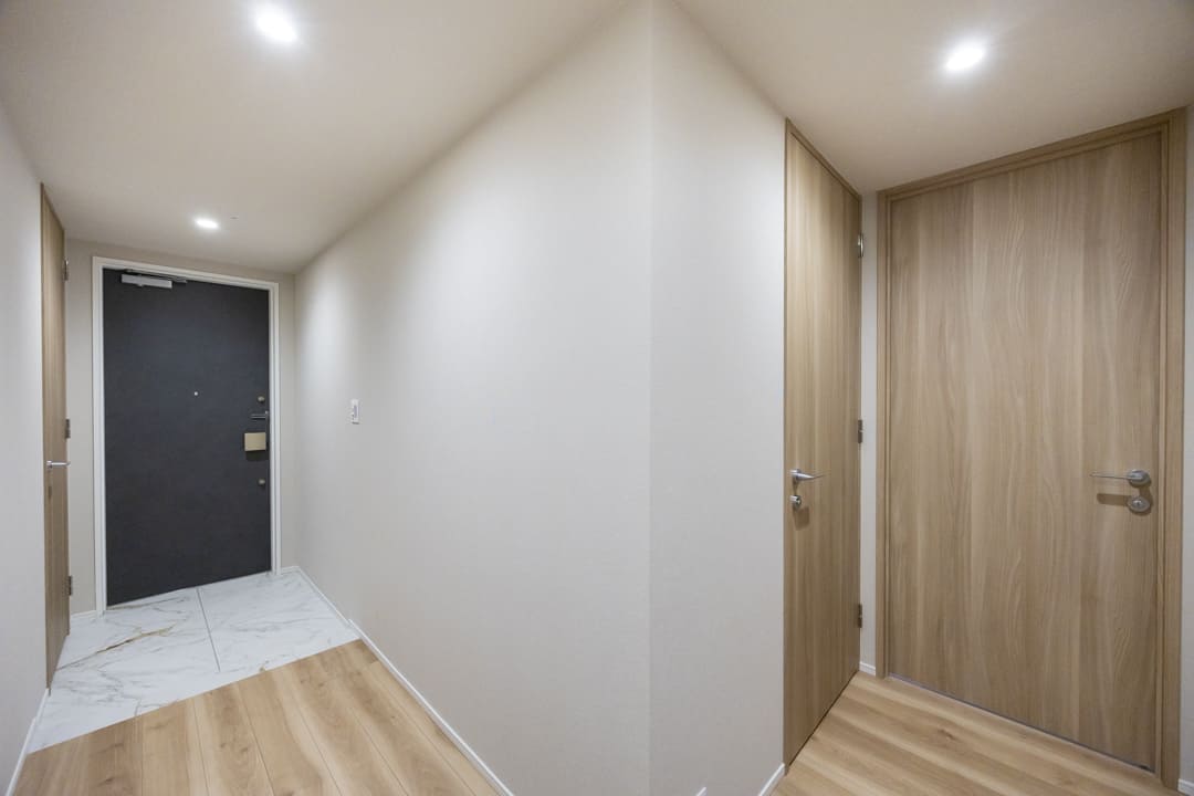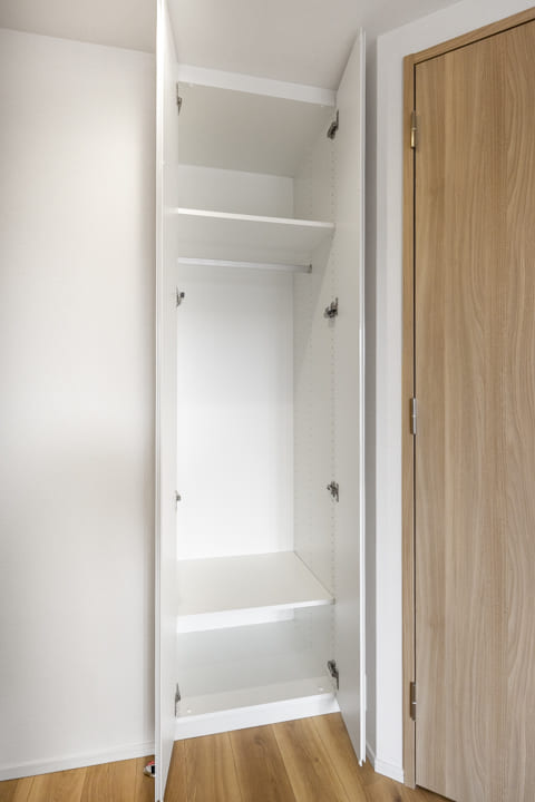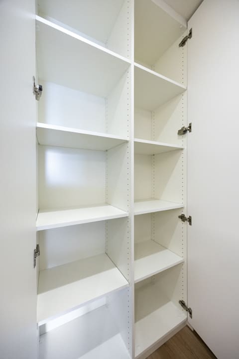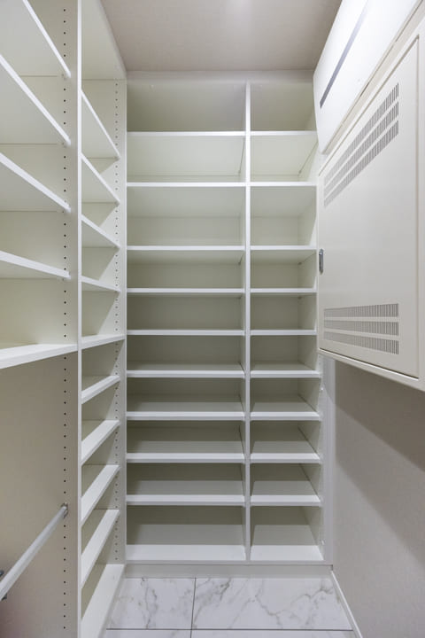 高級感が漂う玄関にはシューズインクローゼットが造られています。中には可動棚が設置されているので、持っている靴に合わせて調節が可能です。傘立てスペースもありますよ。