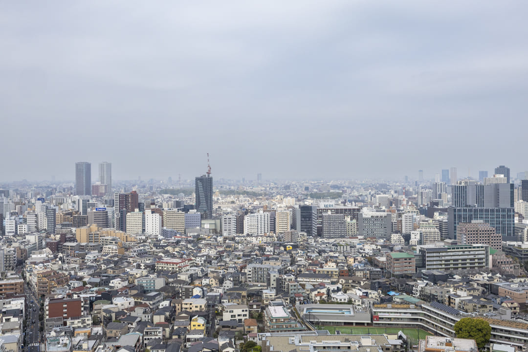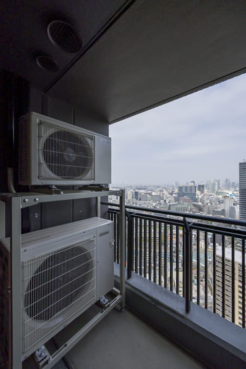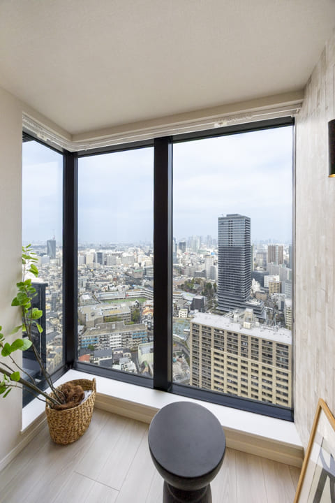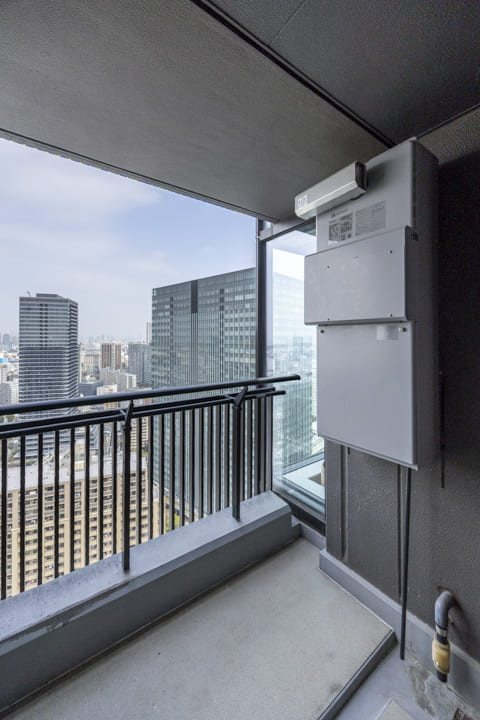 約4.88㎡のコンパクトなバルコニーは、屋根がしっかりあるタイプです。31階部分のため目の前には開放的な眺望が広がっています。空の占める割合も大きく、都心にいながら圧迫感のない眺めを感じられるのが特徴です。