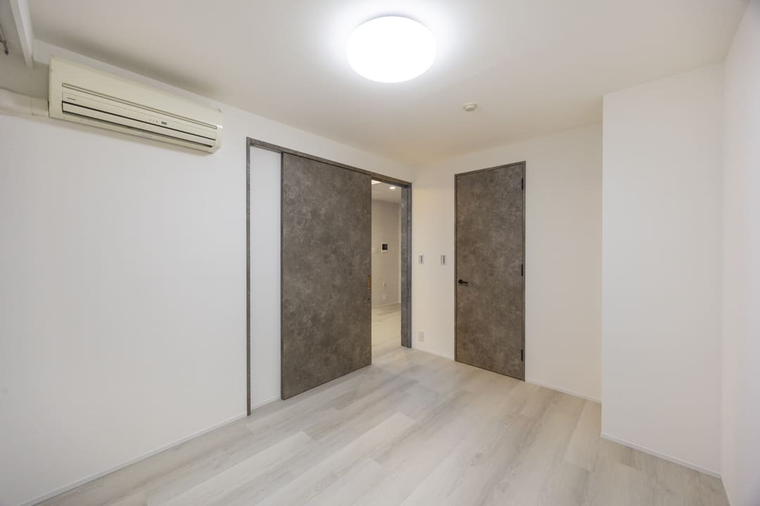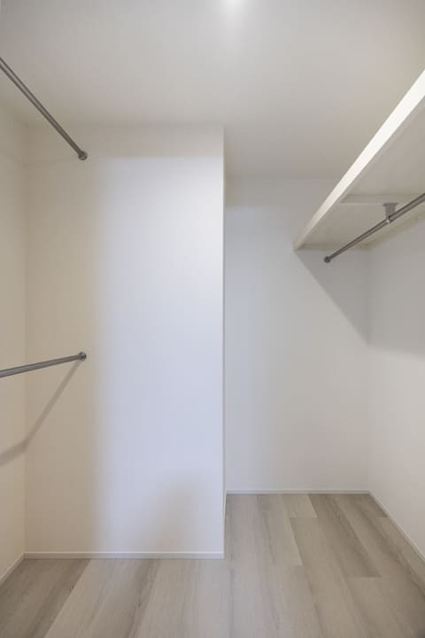約6.0帖の洋室は、リビングダイニングキッチンに隣接しています。ゆとりがあって、大きめのベッドなども配置できそうです。また、ウォークインクローゼットが造られているので、洋服などたくさんの荷物を収納することが可能となっています。
