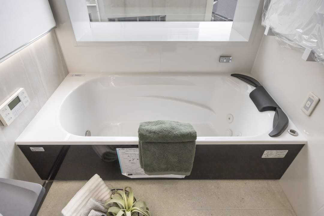 浴槽には肩包み湯とジェットバスが搭載されています。左右に分かれたツインの水流が心地よく包み込み全身を温めてくれますよ。さらに、吹き出す泡で身体をほぐすジェットバス機能もセットで搭載。異なる機能を使い分けて、一日の疲れを癒してください。