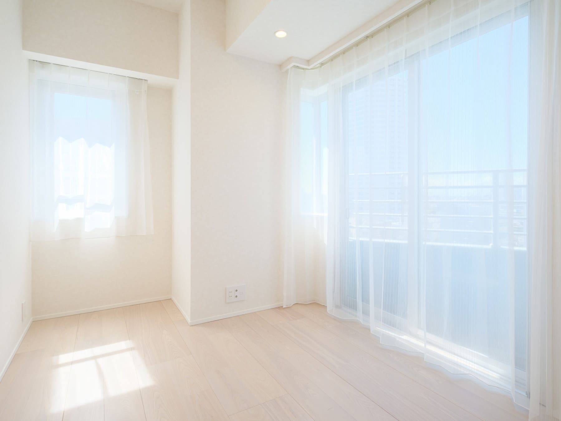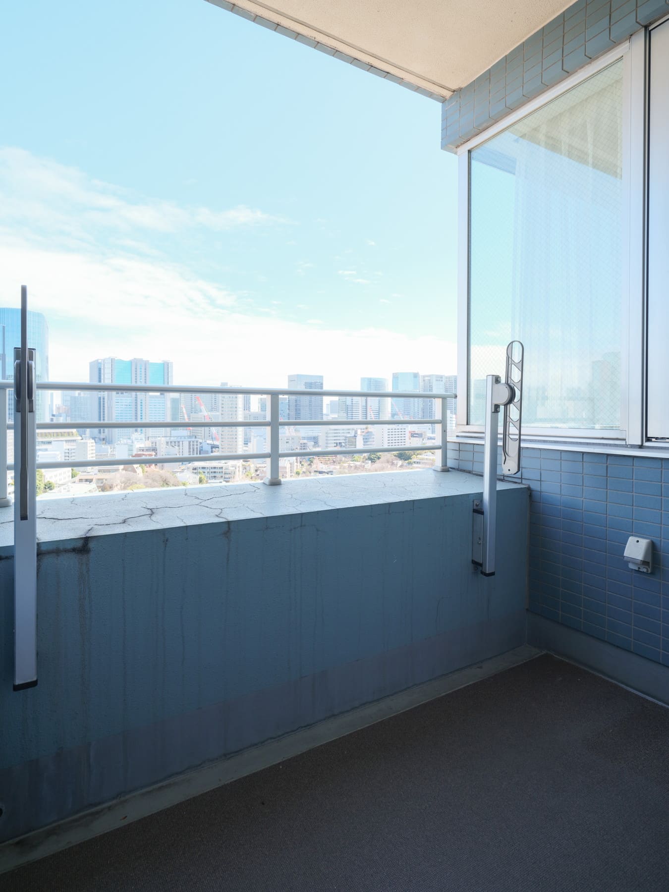 洋室1に面するバルコニー。13階部分につき見晴らしが良く、遠く広がる青空を見渡すことができます。東京タワーやレインボーブリッジも望めますよ(※天候によります)。東向きのため朝日が心地よく差し込み、爽やかな目覚めのひとときや、朝のリフレッシュタイムにもおすすめです。