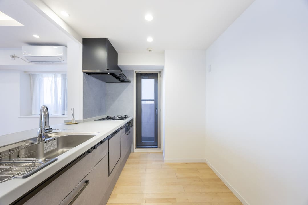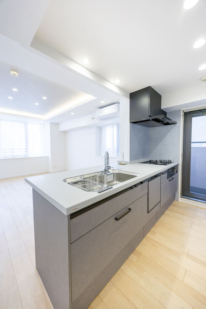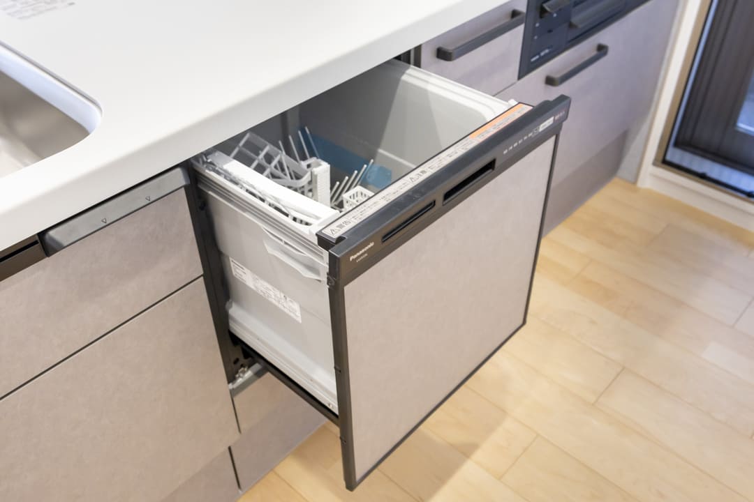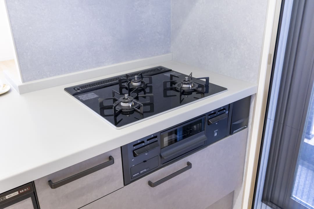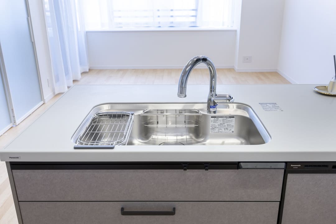 3口コンロ、グリル、食洗機付きと設備面も充実しています。シンクも広々としているので野菜などが洗いやすそうですよ。