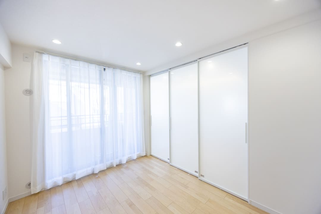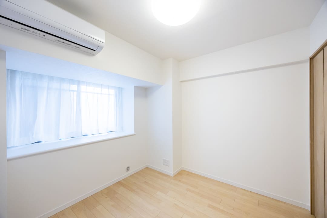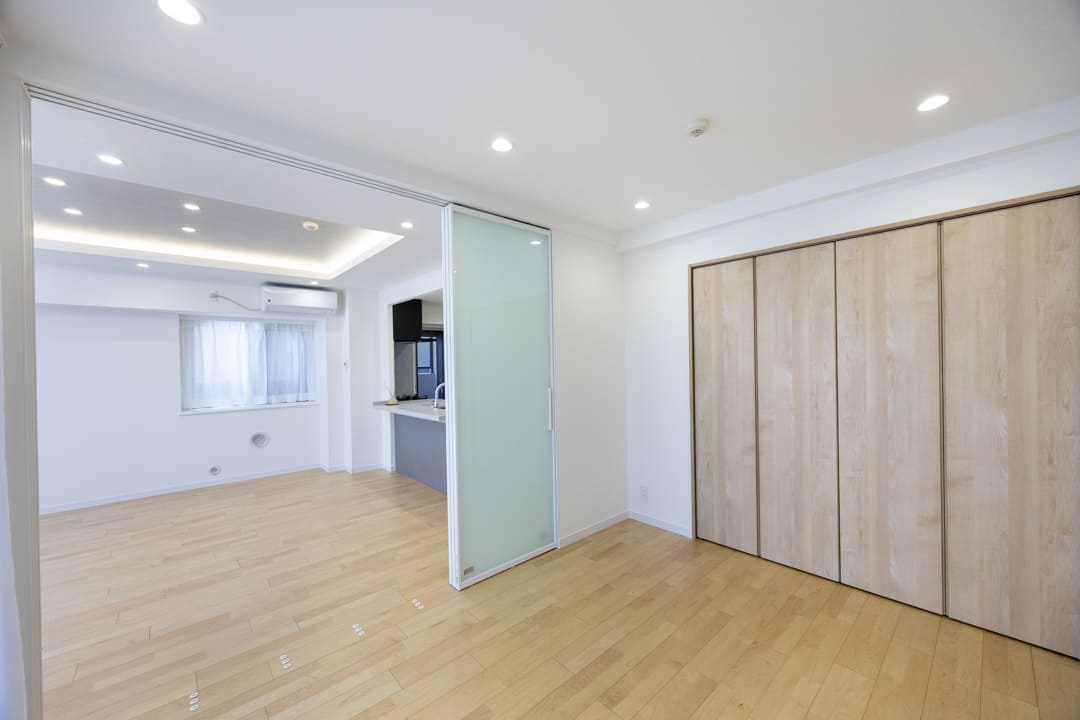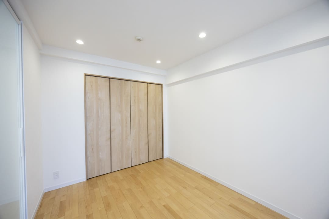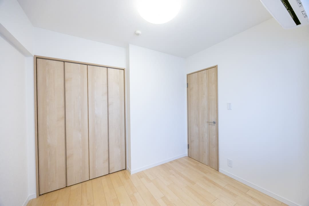 約6.0帖の寝室2は、リビングダイニングキッチンに隣接しています。引戸を開閉することによって、空間をフレキシブルに使うことができて便利な空間。奥行きがあるクローゼットも付いているので、収納スペースが確保されています。