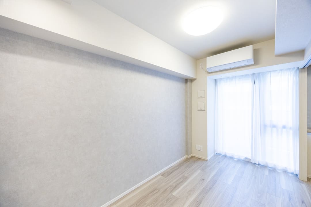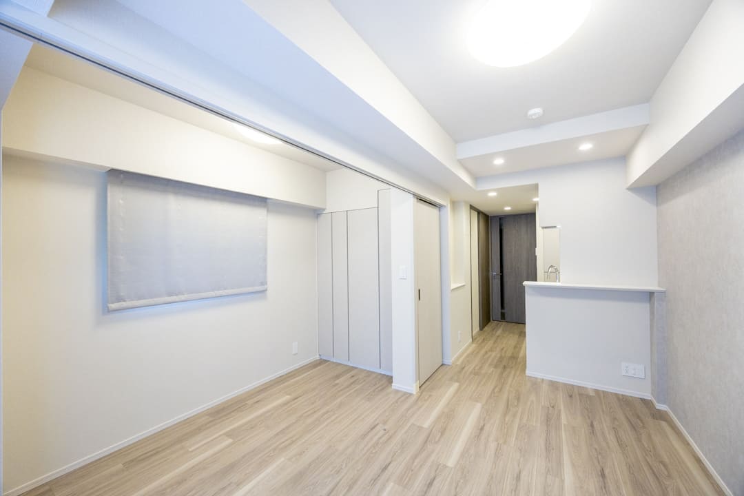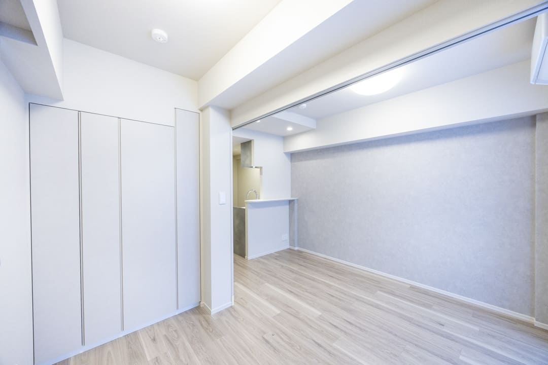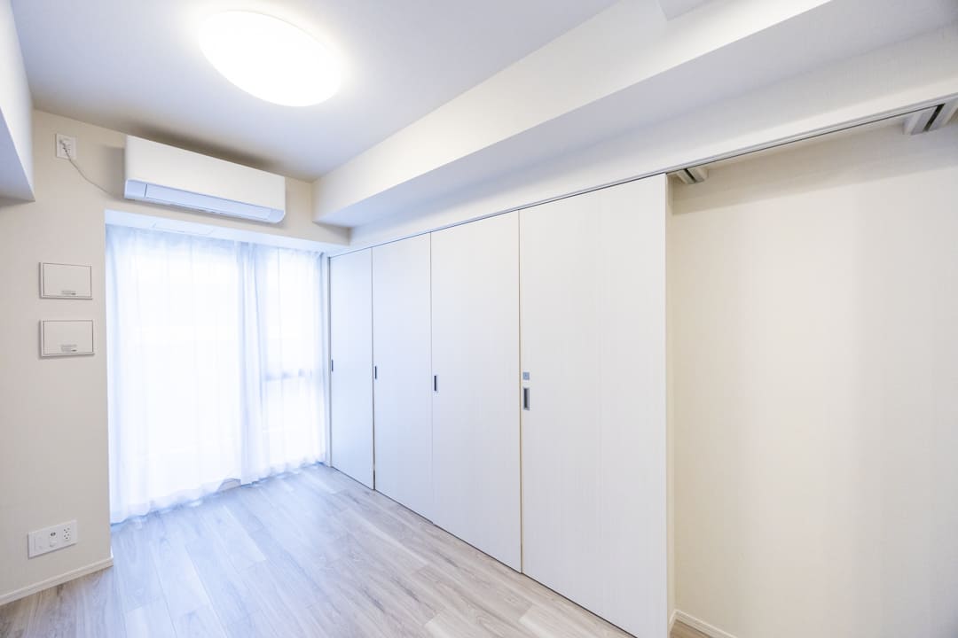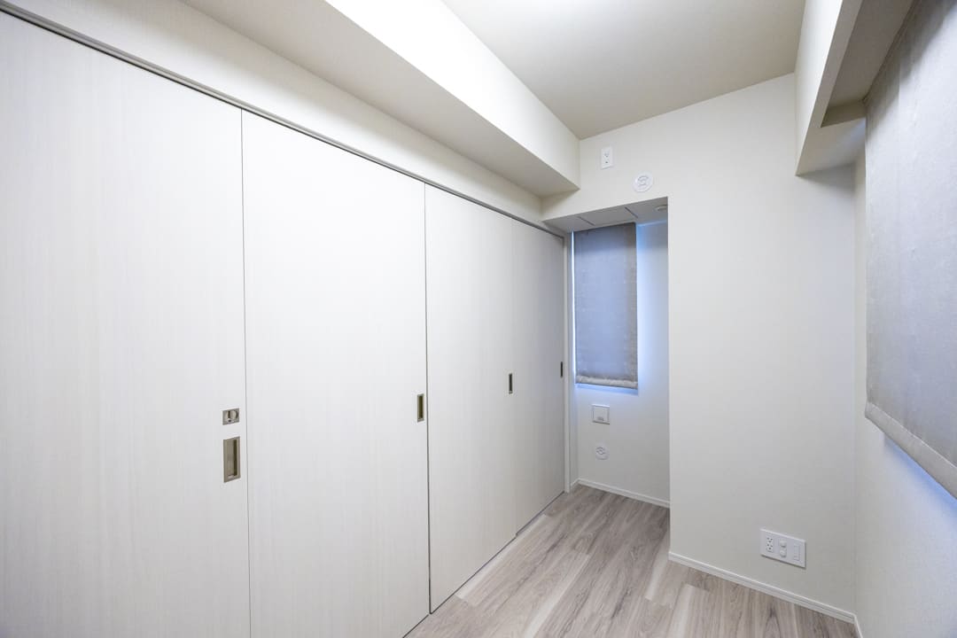リビングダイニングキッチンに隣接している約3.6帖の寝室です。奥行きがあるクローゼットは、洋服や小物が収納できるようになっていて使い勝手良好。仕切りの引戸を開閉することによって、空間をフレキシブルに使うことができるのも嬉しいポイントですね。