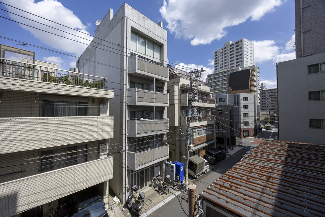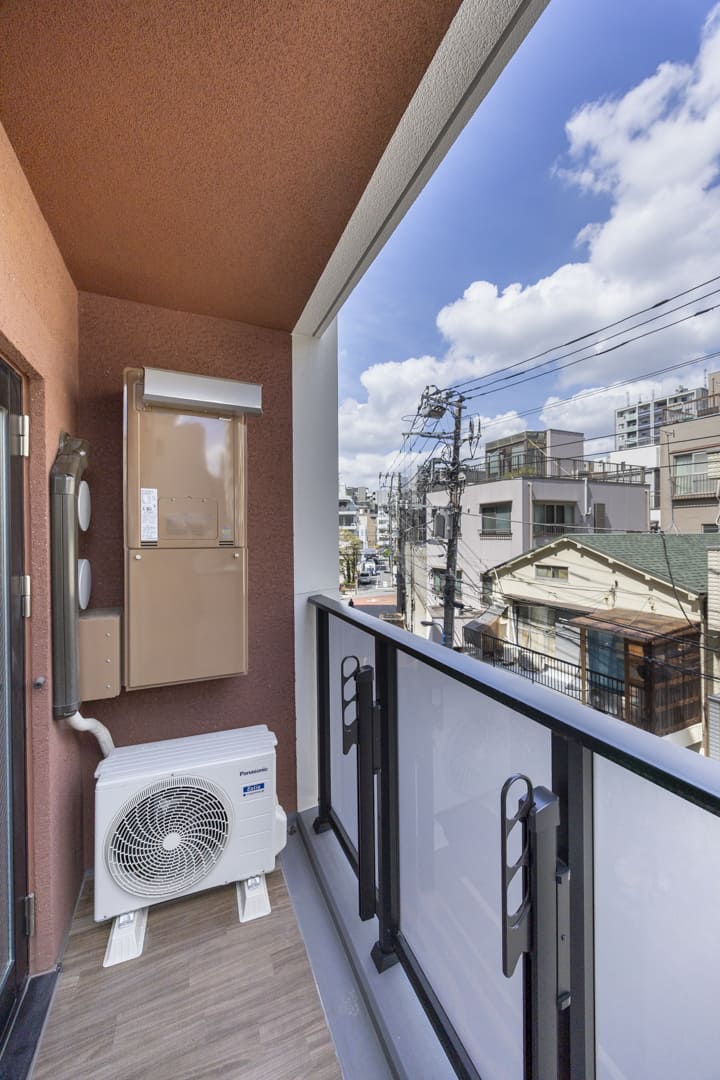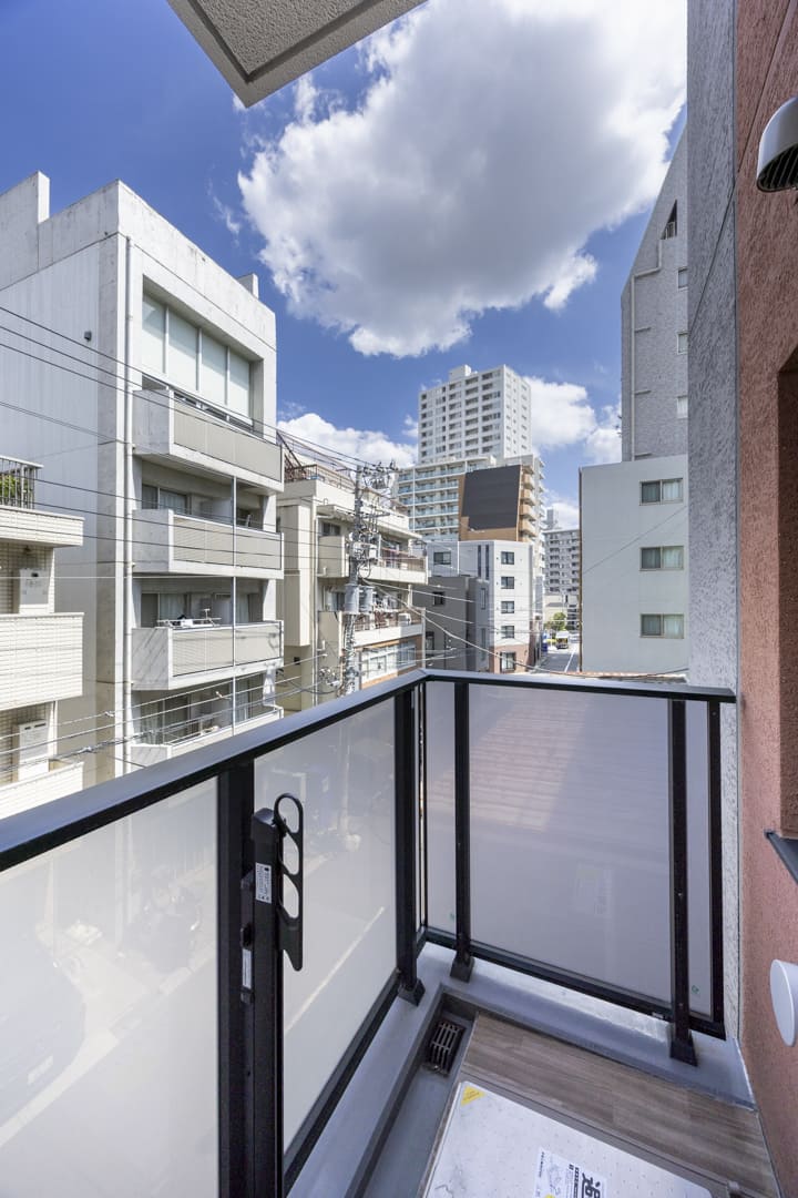 約3.16㎡のバルコニーは北向きです。コンパクトな空間ですが、手摺壁には透け感があって圧迫感はありません。目の前には閑静な住宅街が広がり、落ち着いた街並みを眺めることができますよ。