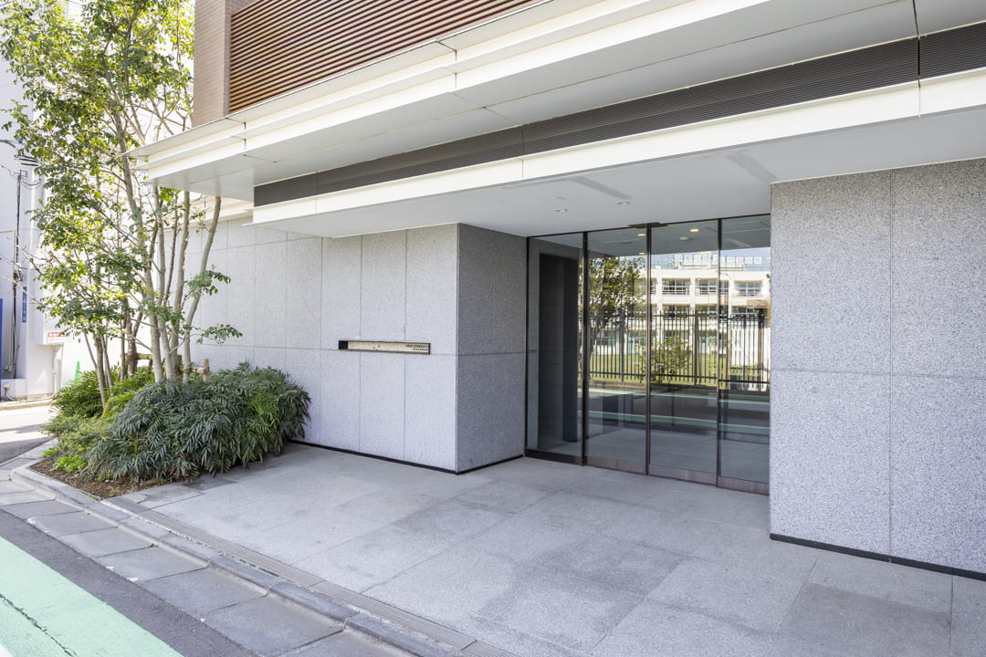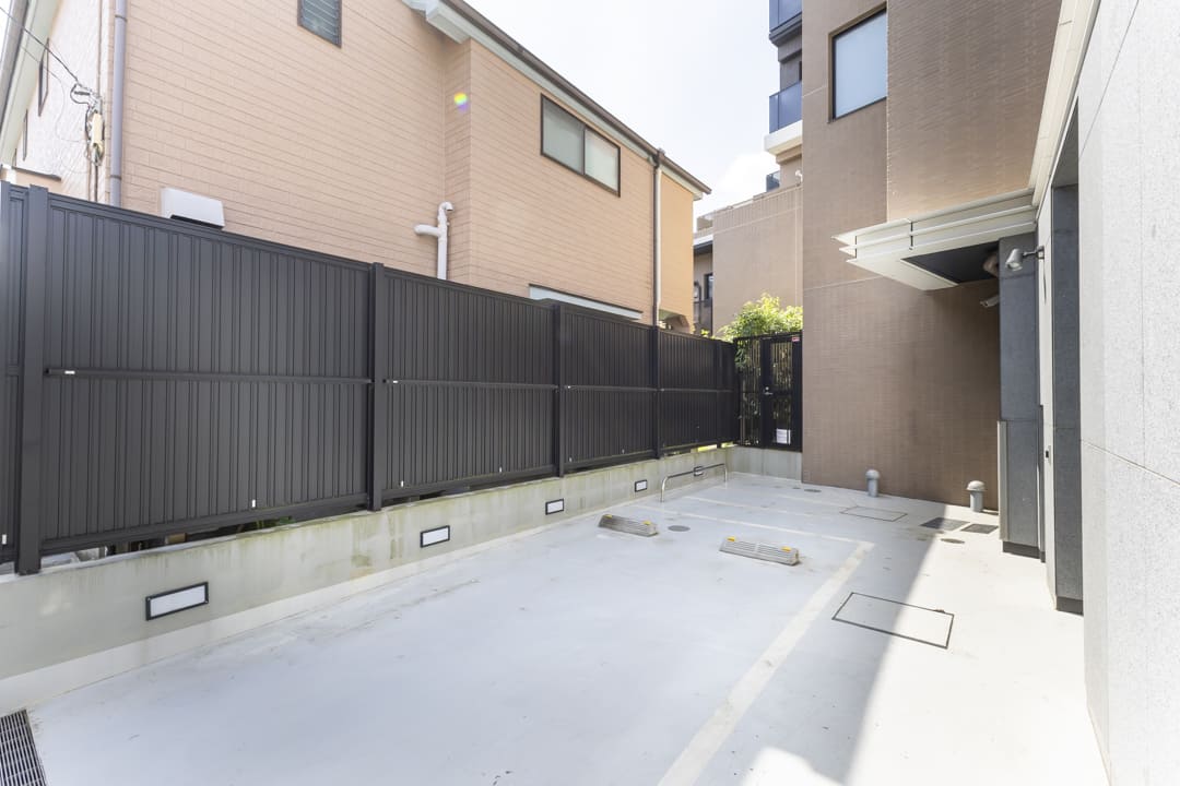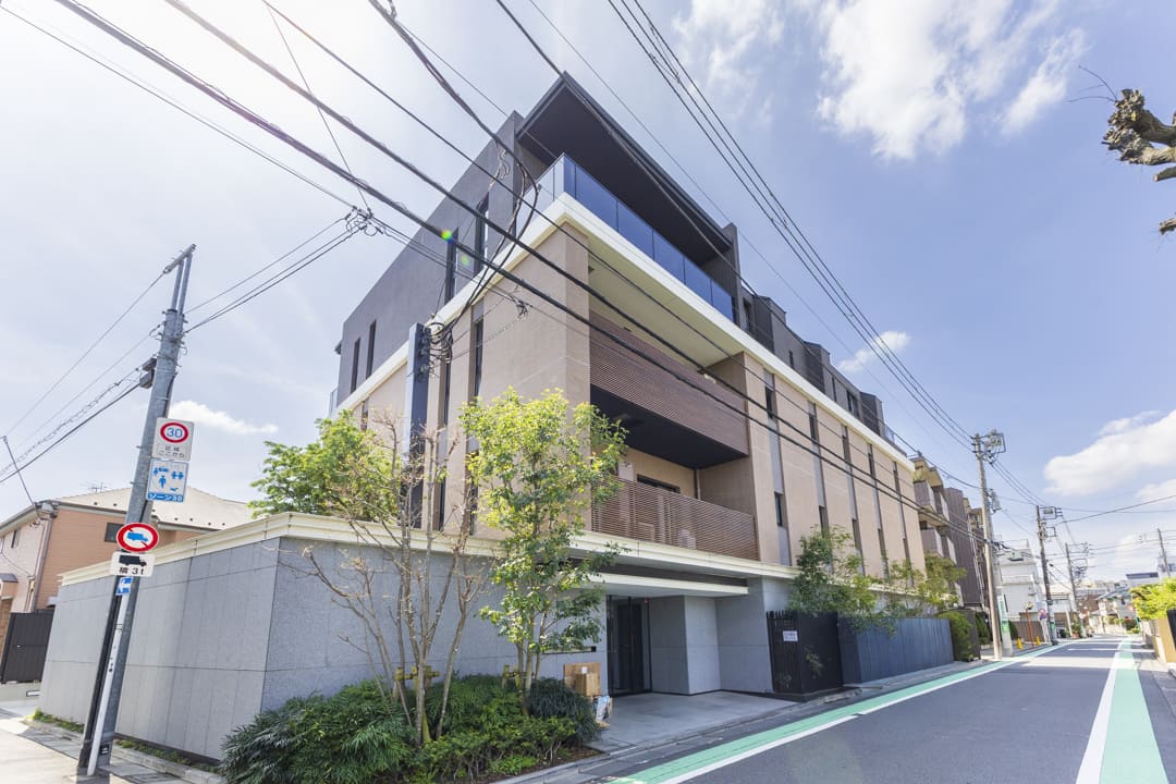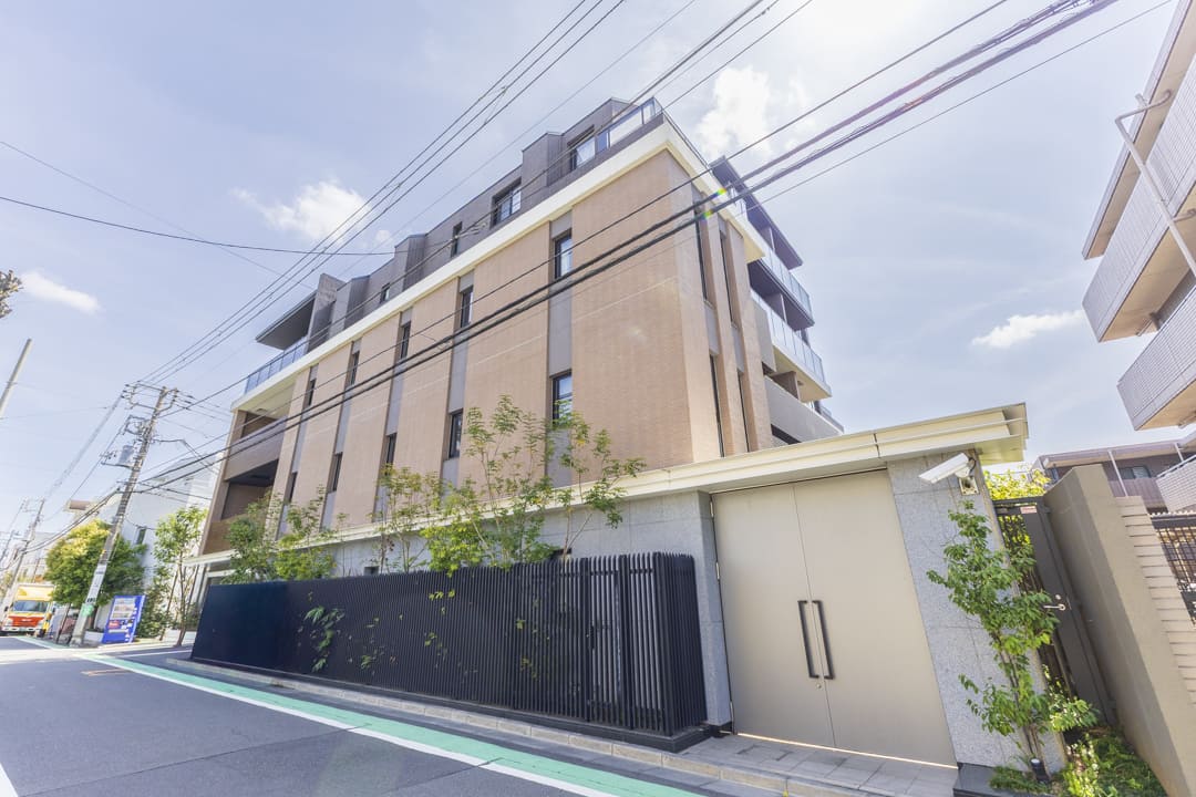 2019年(令和元年)7月竣工、地下1階付5階建の低層レジデンス。鉄筋コンクリート造、総戸数は23戸です。ブラックとブラウンのタイルを使用したモダンな外観が印象的で、植栽の緑が彩りを添えています。エントランス・エレベーター・各住戸ドアのトリプルセキュリティシステムを採用し、暮らしの安心をサポート。玄関扉・開閉窓に防犯センサーが付いているのもポイントです。共用部はホテルライクなホテルライクな内廊下設計で、プライバシーを守りやすく、天候の影響を受けづらいです。宅配ボックスや共用のペット足洗い場も備わっています。