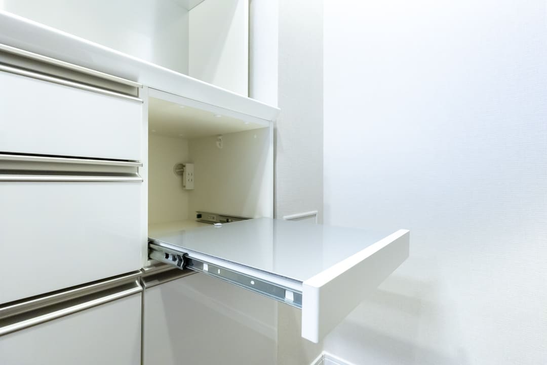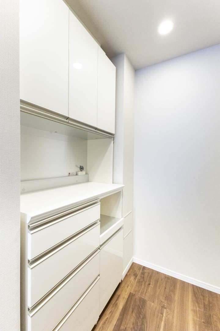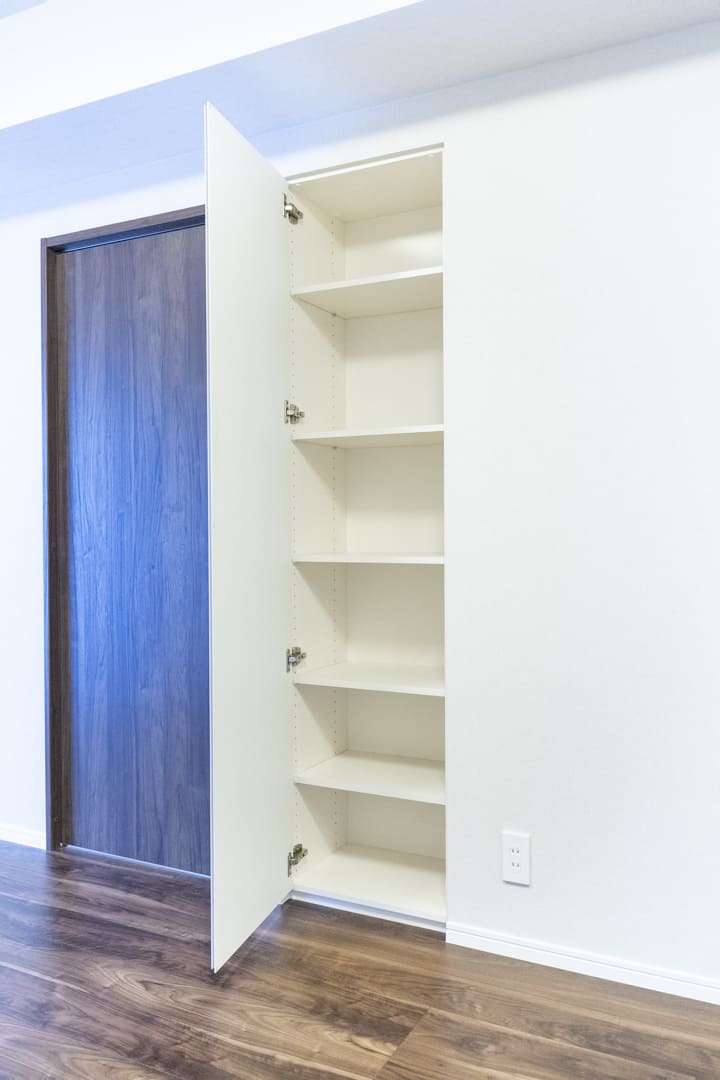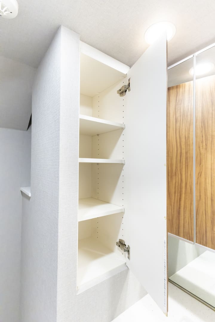 自由度の高い可動棚収納を完備。生活用品や書類、インテリア小物まで効率良く整理できます。扉付きのため、洗練された室内を美しく保てるのも魅力です。