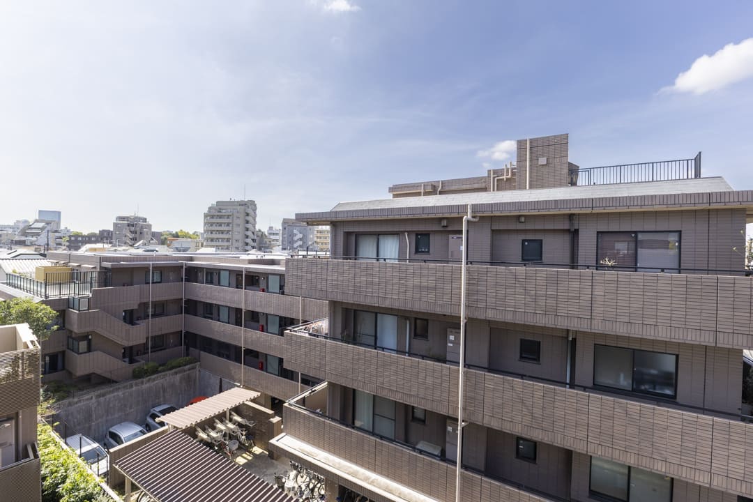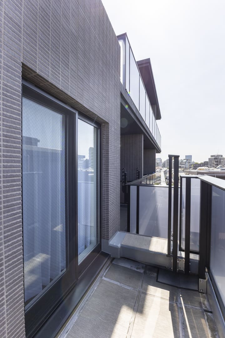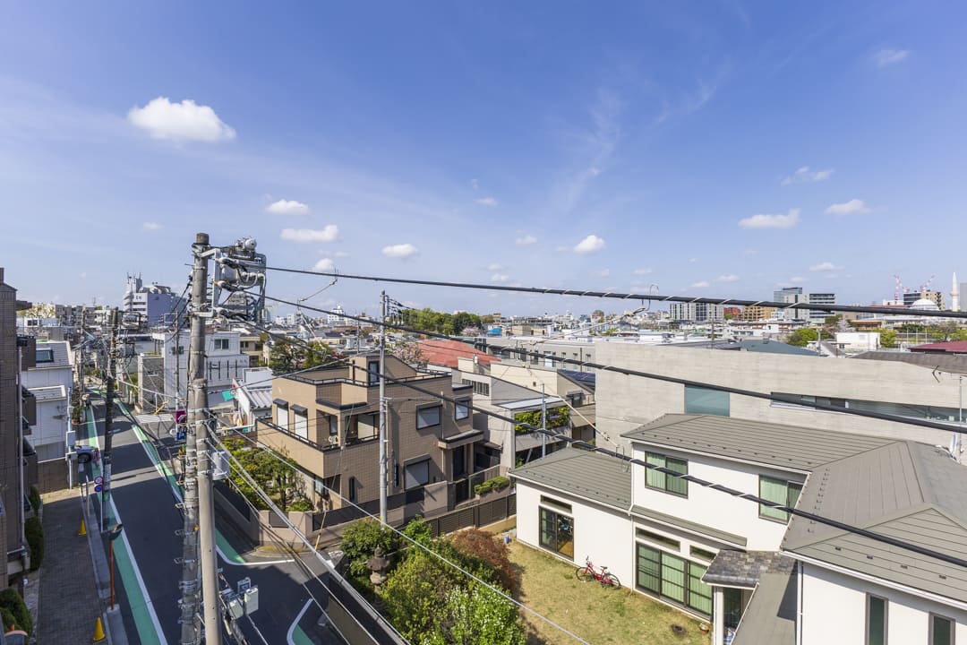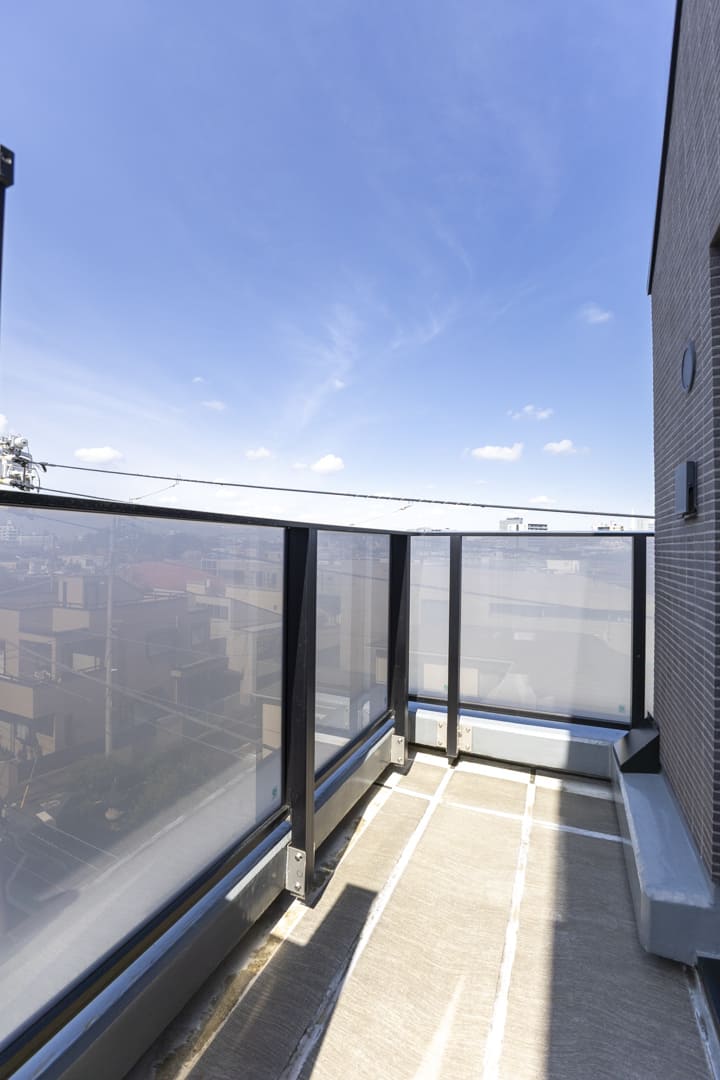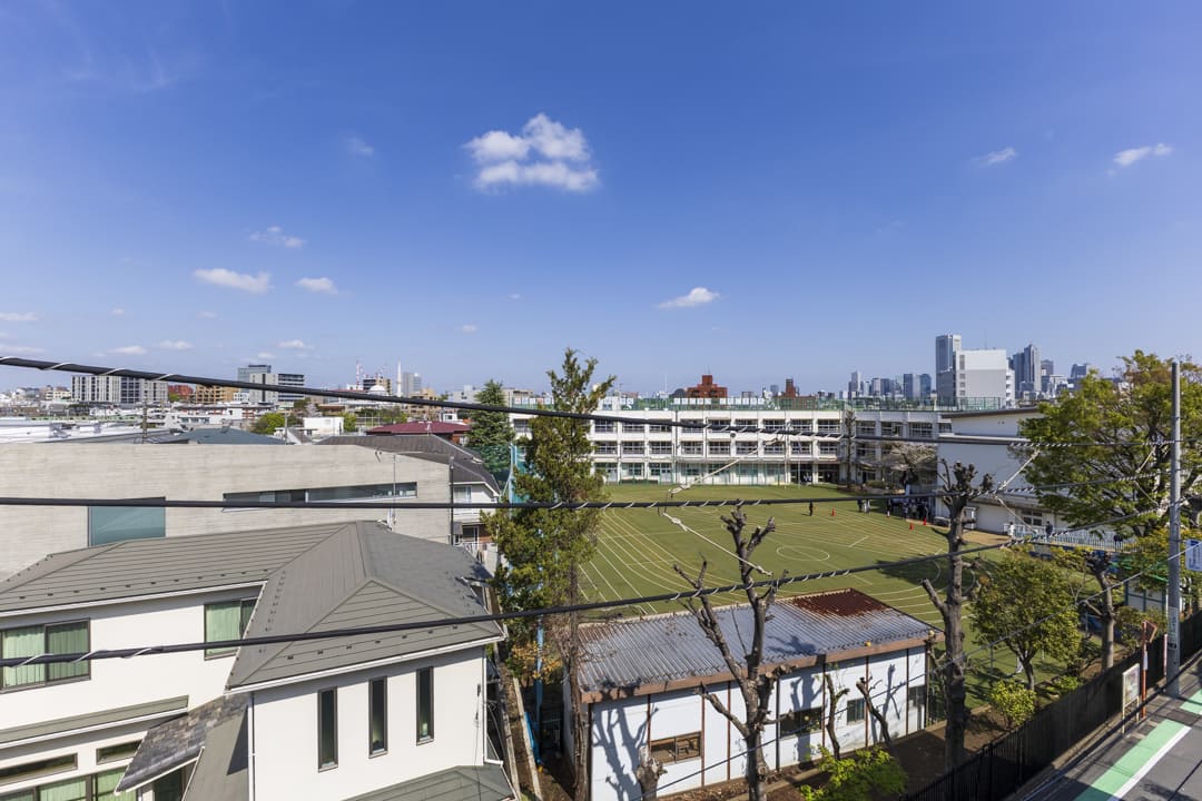 南西側にはバルコニーとルーフバルコニーがあります。あたたかい陽光がたっぷりと届く、心地よいスペース。朝の目覚めに軽く体を動かしたり、日中にほっと一息ついたりと、日常のひとときを豊かに彩ります。遠くまで広がる青空を望む、開放的な眺望も魅力。眼下には小学校のグラウンドが広がり、視界の抜けたのびやかな景色が楽しめます。