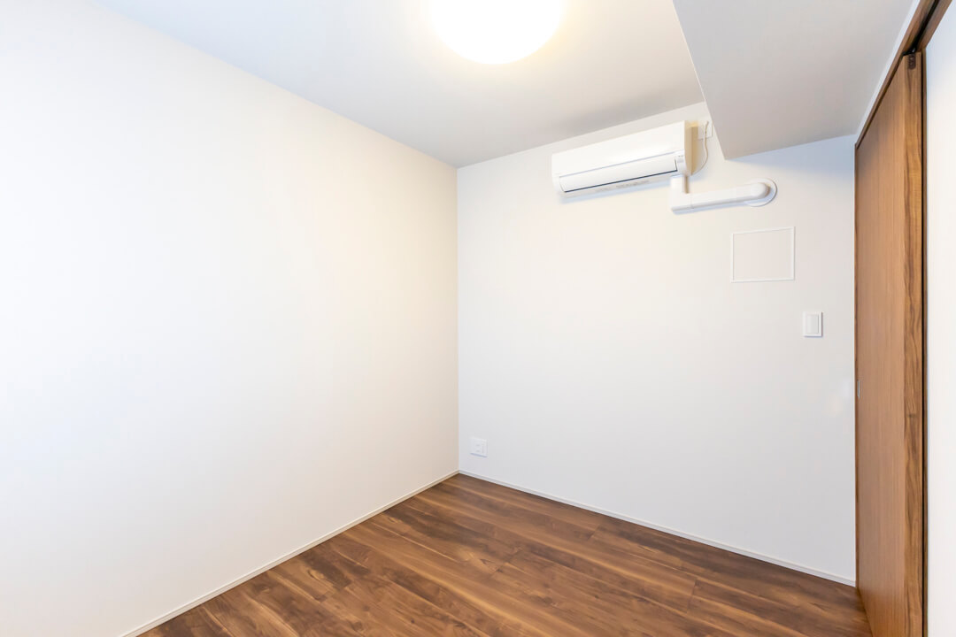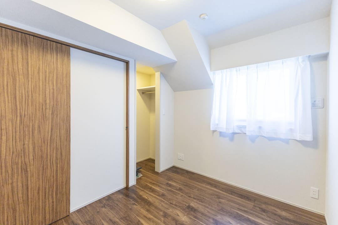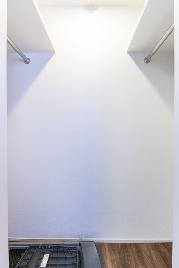 約5.4帖の洋室1。廊下に面し、独立性の高いプライベート空間です。北西向きの窓と、オープン仕様のWIC(ウォークインクローゼット)を設置。衣類はもちろん、トランクケースやゴルフバッグといった大きな荷物も収納でき、居室空間を有効活用できます。通気性の良さも魅力ですね。