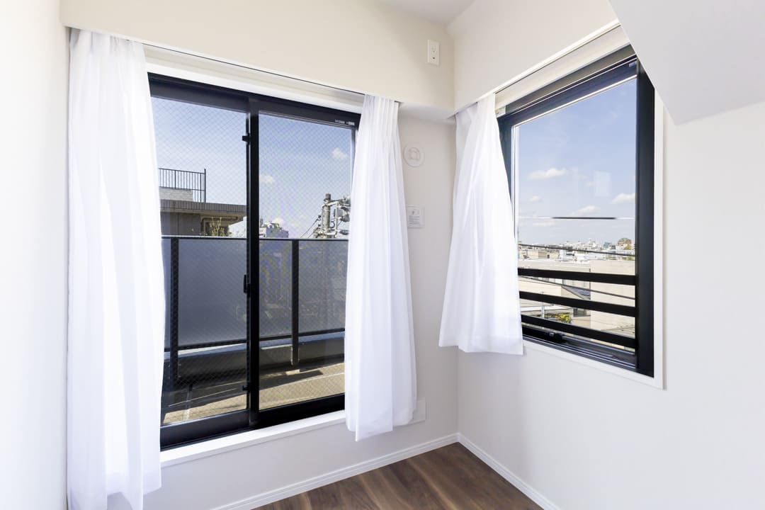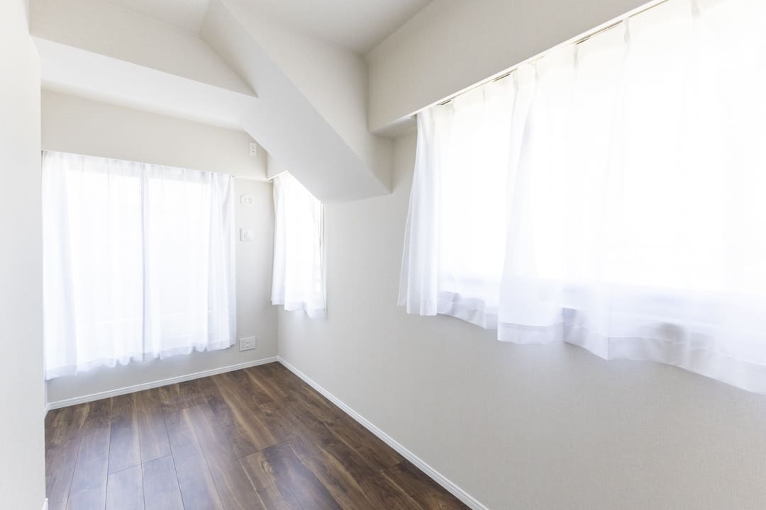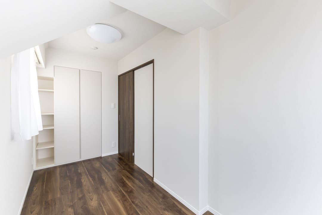 LDKに隣接する約5.0帖の洋室2。南西・北西の二面採光で、明るい光が差し込みます。窓の外には青空が広がり、穏やかな時間を過ごせそう。風通しの良さも魅力です。可動棚とクローゼットを備え、見せる収納と隠す収納の使い分けができるのもポイントです。