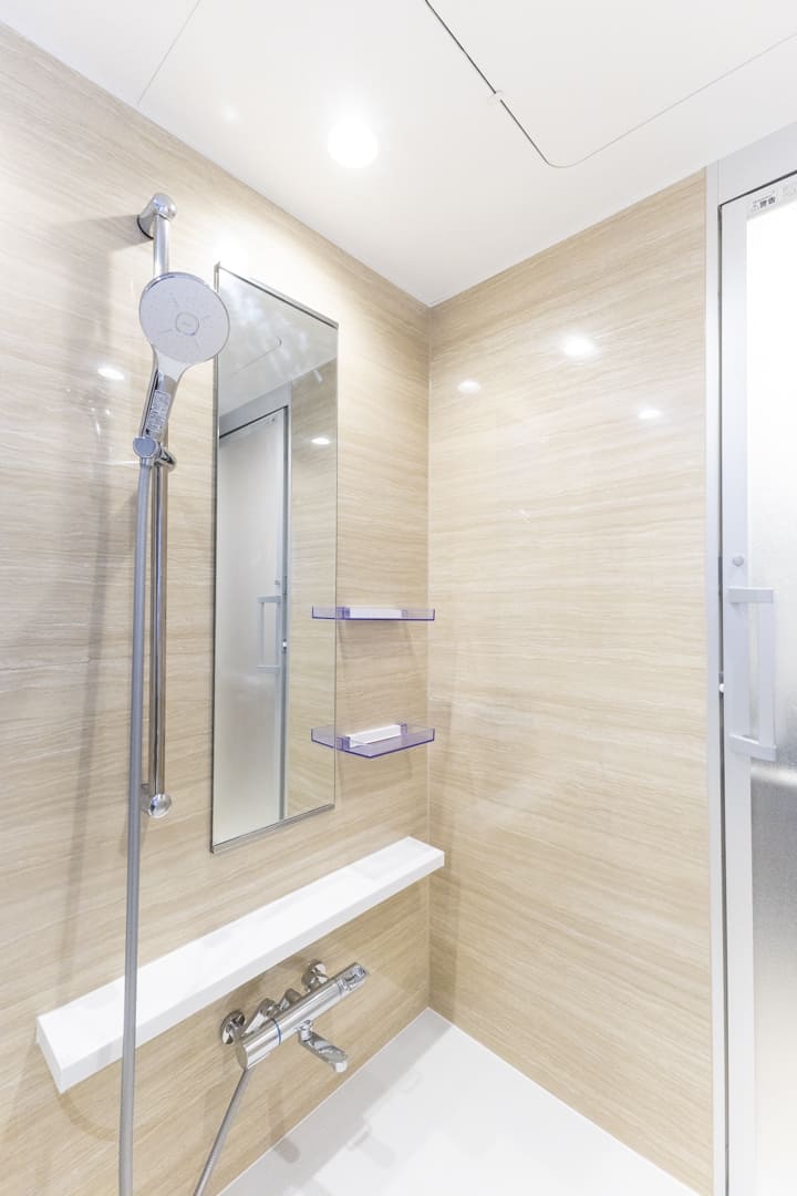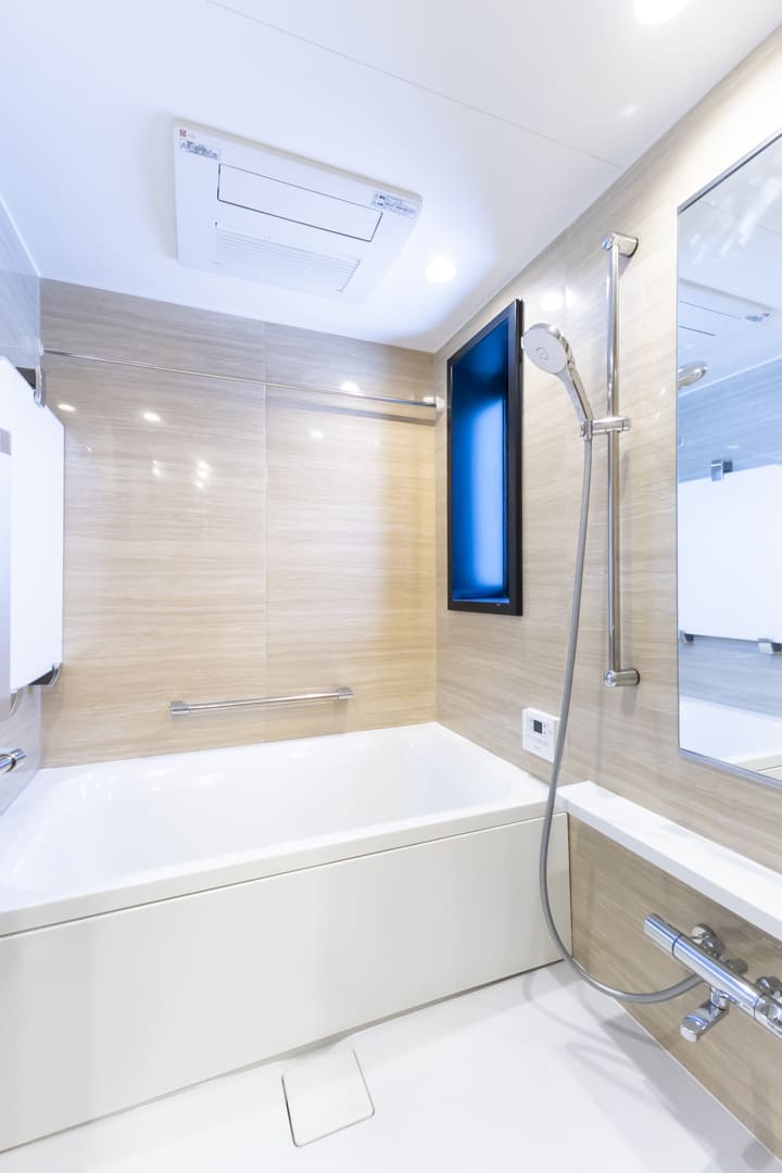 窓付きで開放感のあるバスルーム。自然換気が可能で、湿気がこもりがちな空間にも配慮された設計です。浴室換気乾燥暖房機や追い焚き機能に加え、ミストサウナも搭載されていて、日々の疲れを心地よく癒せます。発汗によるリフレッシュや、ゆったりとしたボディケアタイムなど、暮らしに寄り添う快適なバスタイムをお楽しみいただけます。