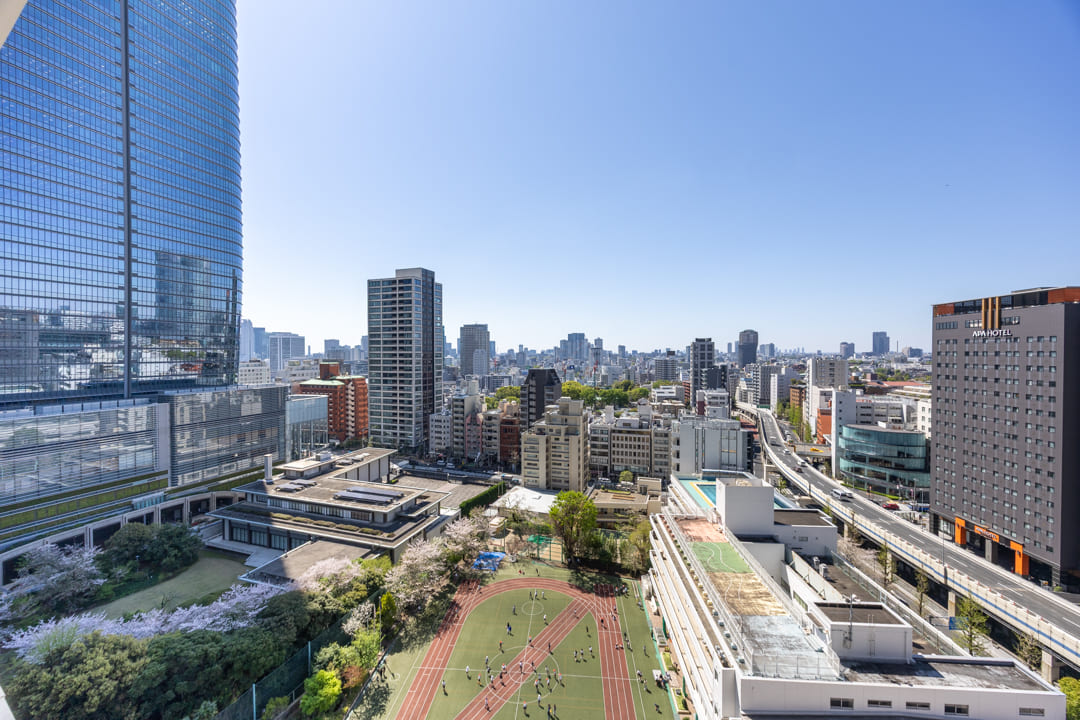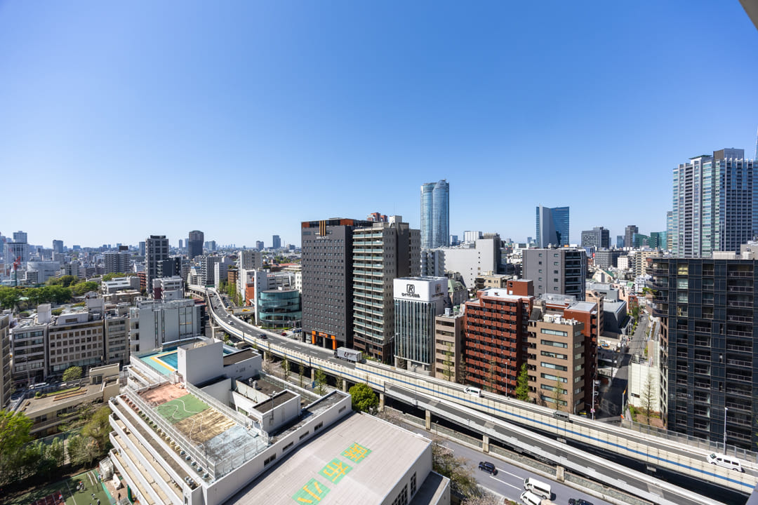 12階からの眺望は、周囲の建物群を見渡せる開けた視界が広がり、都心の街並みを身近に感じられるロケーション。視線の先には高層ビルと低層の街並みがバランスよく広がり、時間帯によって異なる表情を楽しめます。眼下には小学校が望め、無機質になりがちな都心の景色の中で、やわらかさを感じられますよ。将来的にも高い建物が建ちにくいケースが多く、景色の変化が穏やかになりやすい点も魅力です。