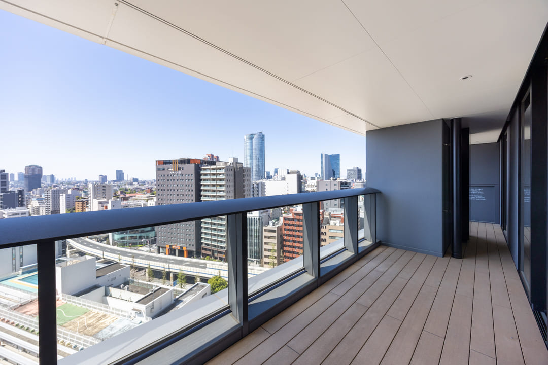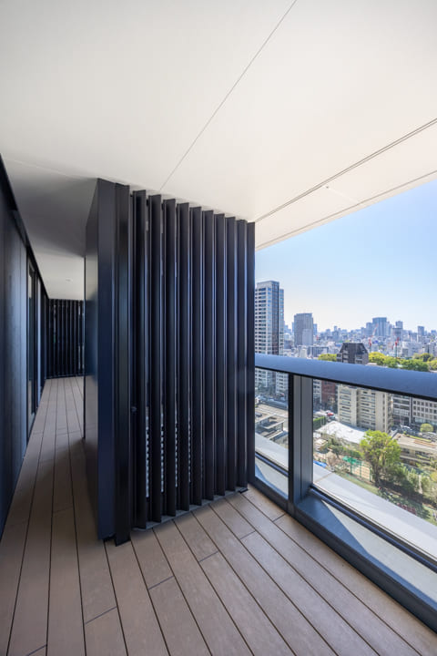 約17.03㎡の広々としたバルコニーは、外の空気を感じながらゆったりと過ごせるスペース。軒がしっかりと張り出しているため、直射日光をやわらげつつ、穏やかな明るさを取り込めるのも特徴です。足元にはウッド調のフロアが採用されており、室内からのつながりも感じられる落ち着いた雰囲気に仕上がっています。