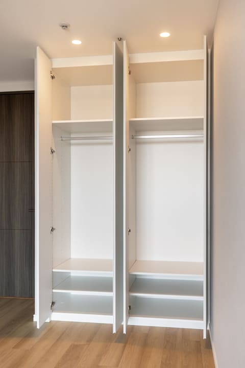 約7.8帖の寝室は静かに思索を深める書斎や、大切な時間を楽しむ趣味の空間、リモートワークにもふさわしい一室。ライフスタイルに寄り添いながら、自在にお使いいただけます。奥行きのあるクローゼットも完備されています。