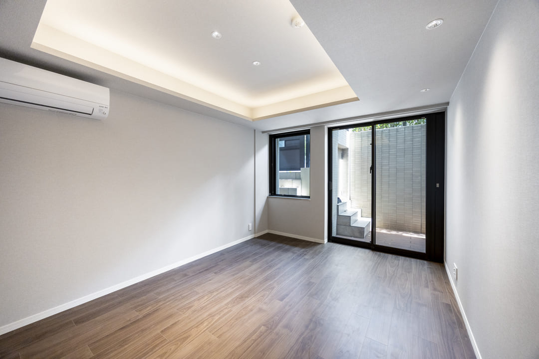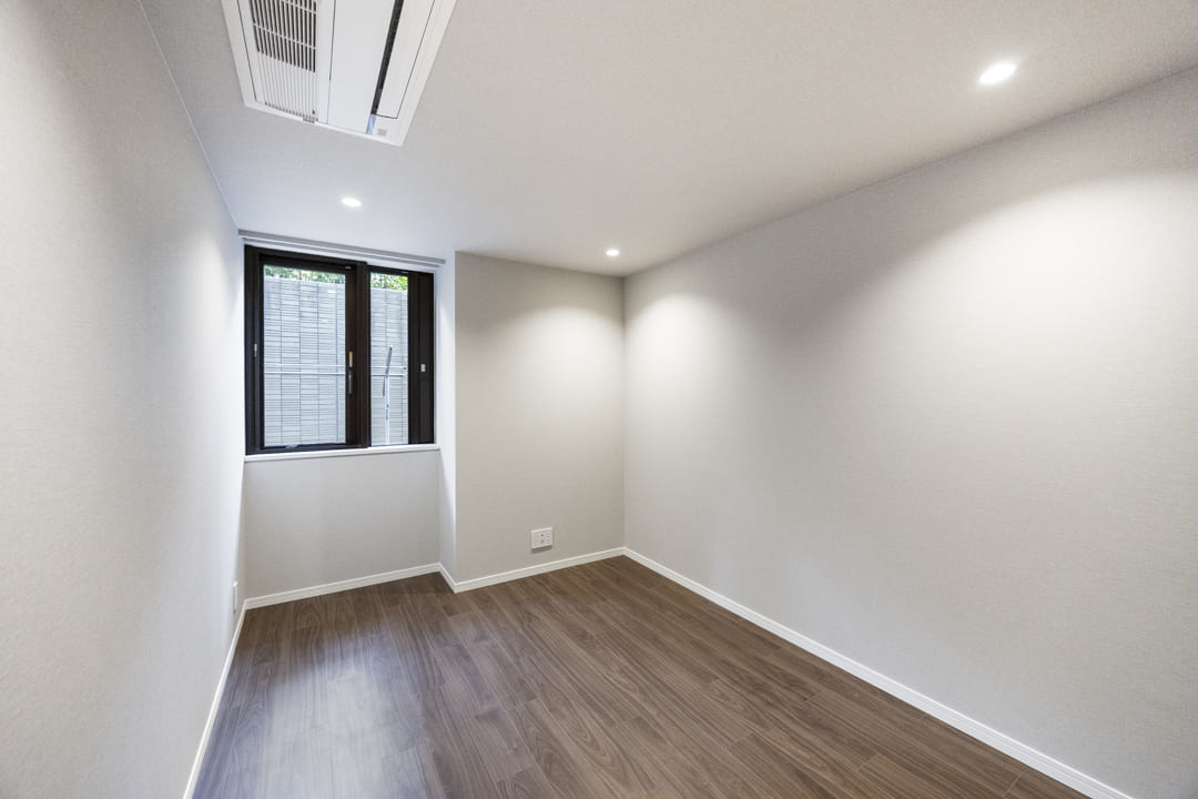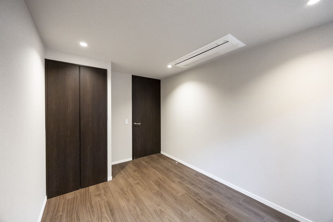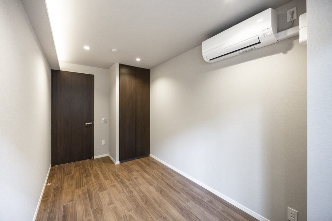 約6.2帖の寝室1。東向きの窓とクローゼットを備えた、使い勝手の良い空間です。朝日がやさしく差し込み、爽やかな朝を迎えられそうですね。エアコンは空間にすっきりと納まるビルトインタイプを採用。インテリアを美しく保ちながら、快適な室温環境を整えてくれます。子ども部屋としても使いやすいお部屋です。