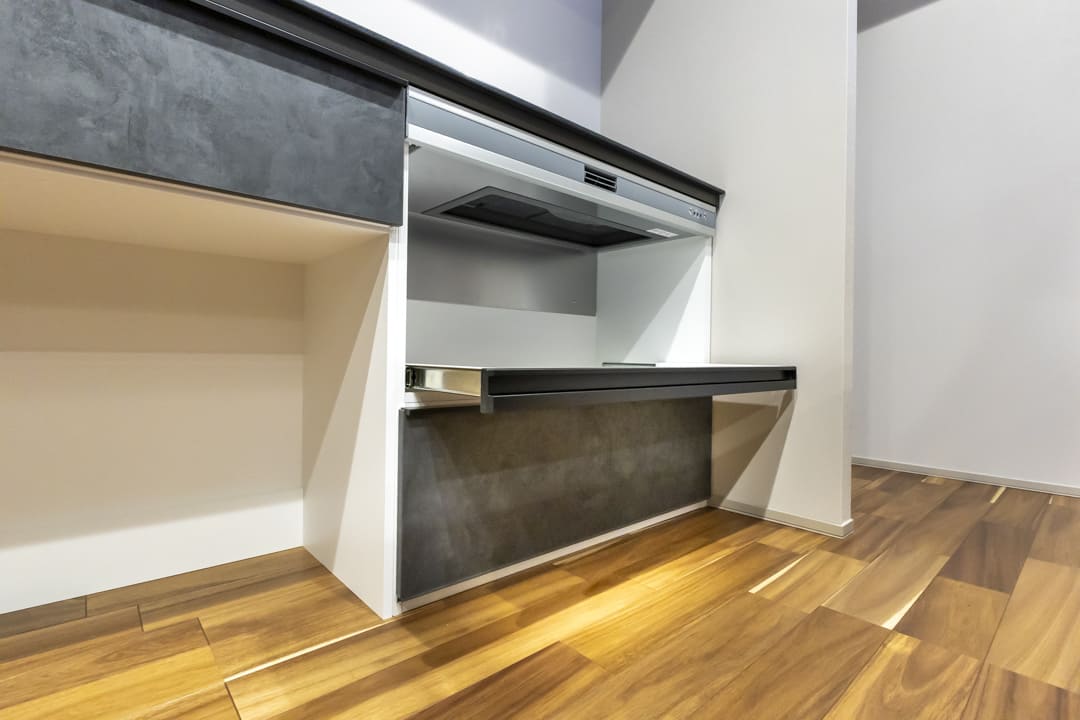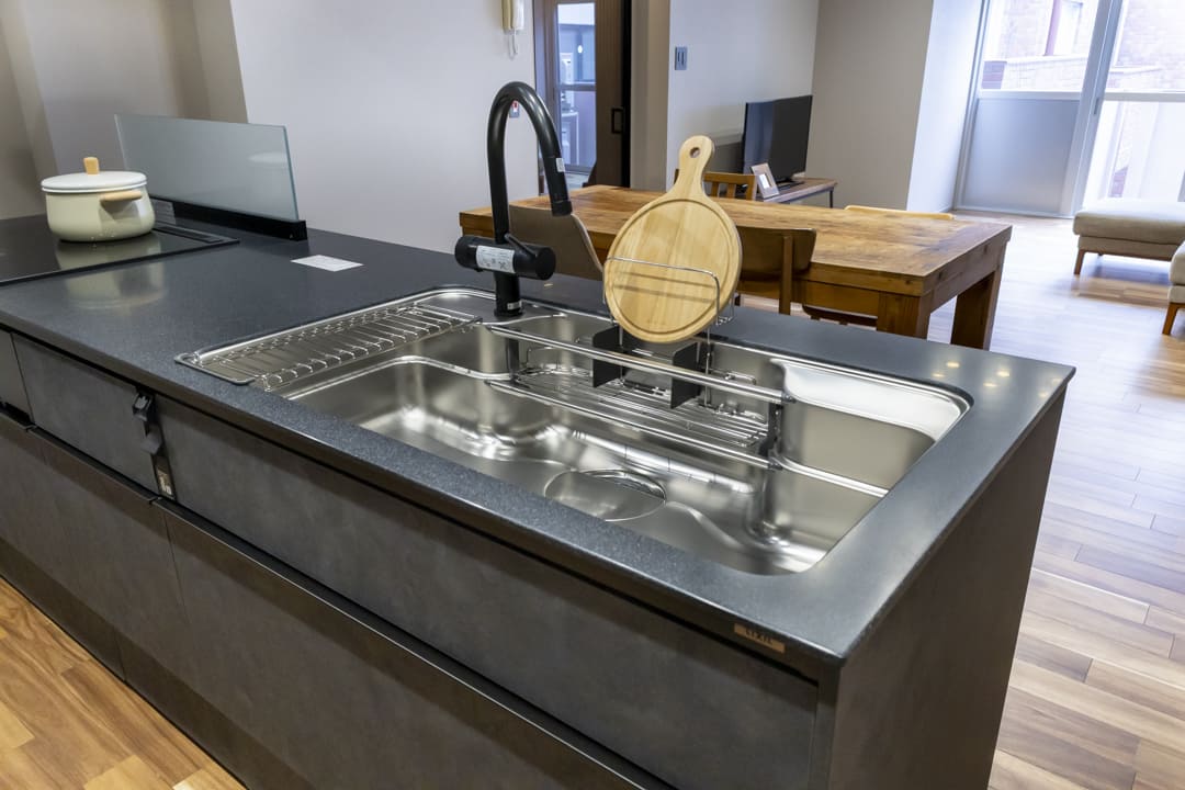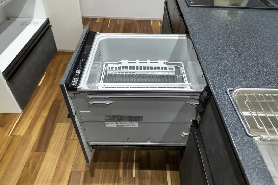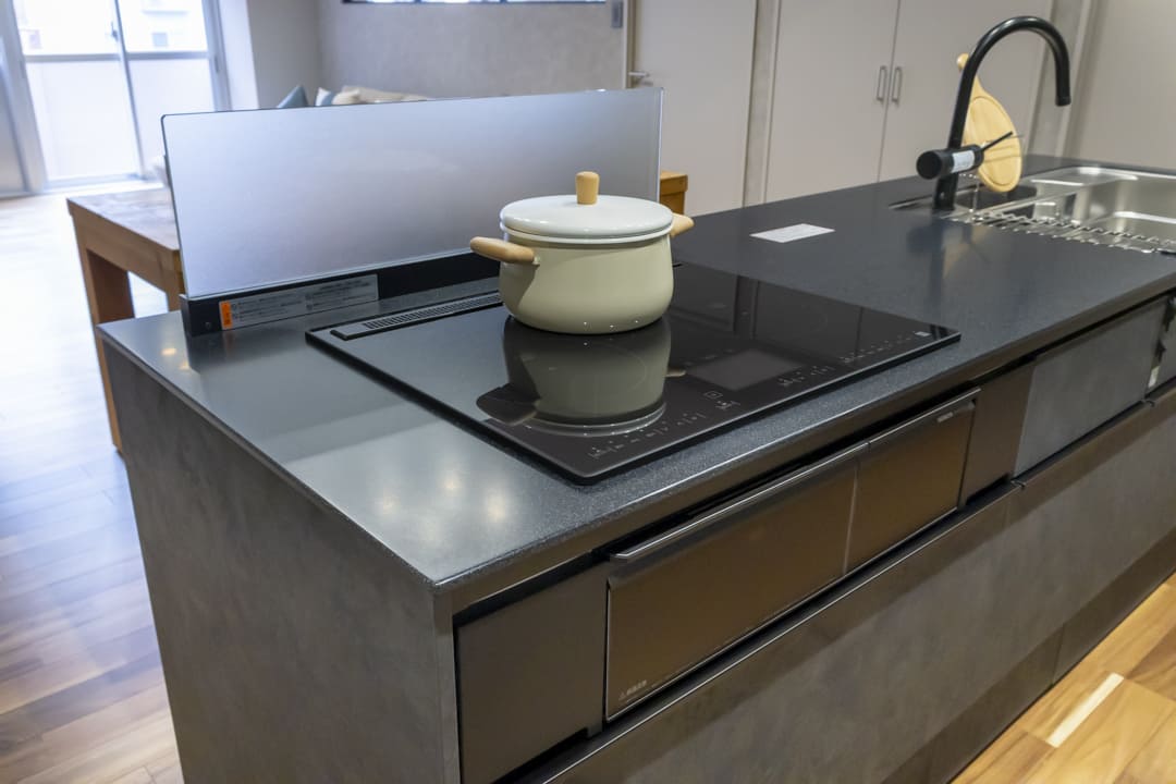 スイッチで火力を調節でき、ガスコンロよりも調整が簡単なIHクッキングヒーターを採用。凹凸がなくフラットなので掃除がしやすいのもポイントです。食洗機も内蔵されていて、後片付けもスムーズに行うことができます。