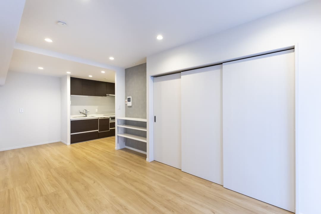 隣接する寝室2とは引き戸で仕切られていて、扉を開放すれば約18.5帖の一体空間として利用可能。普段は落ち着いたLDKとして、来客時や家族が集まるシーンでは開放感のある大空間として、ライフスタイルや用途に合わせた使い分けが叶います。