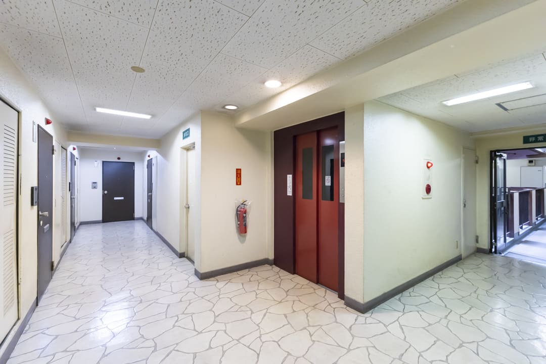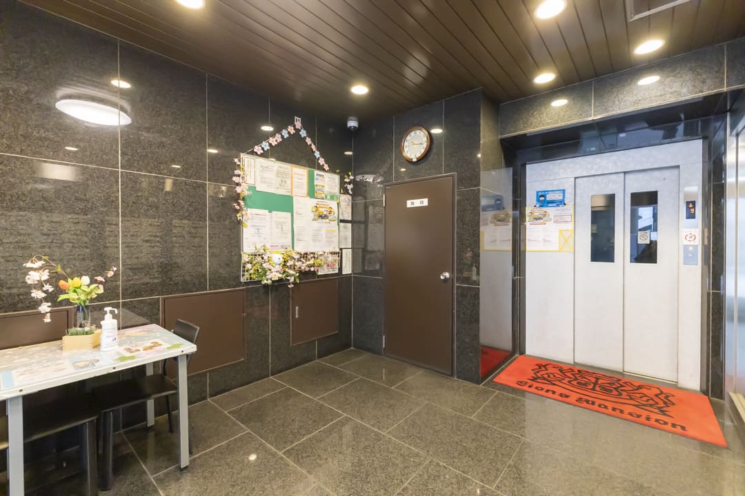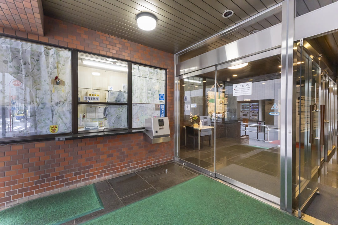 鉄骨鉄筋コンクリート造地下1階付地上10階建、総戸数111戸の大規模マンション。1982年(昭和57年)3月に竣工しました。赤茶系のしっかりとしたタイル張りデザインが印象的です。オートロック完備でセキュリティ面は安心。2015年に大規模修繕工事を実施、その他にも定期的にメンテナンスが行われていて、管理体制の良さがうかがえます。宅配ボックスも設置されているので、忙しい方でも時間を気にせずに荷物を受け取ることができますよ。1階部分には飲食店やクリニックが入っています。