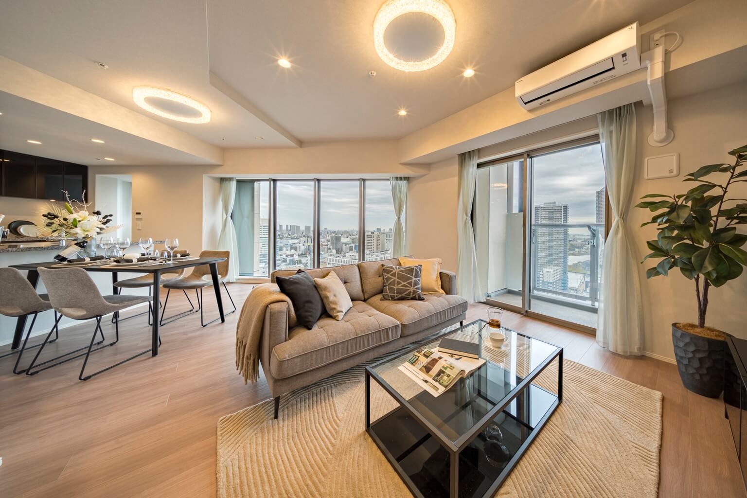 JR京葉線「八丁堀」駅から徒歩1分。今回ご紹介する物件は約73㎡の2LDKです。26階部の高層階につき、リビングからも開放的な景色が望めます。北東の方角には東京スカイツリーも望め、夜には煌びやかな夜景も楽しめます。LDKは約21帖のゆとりある広さ。家族でゆったり過ごせます。