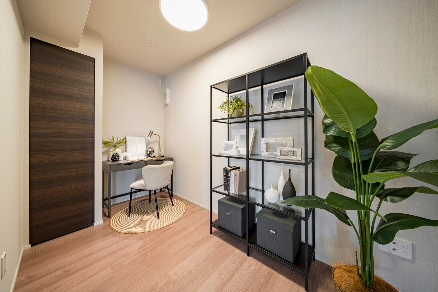 約4.2帖の洋室2。リビングから直接出入りできる動線で、家族とのコミュニケーションが取りやすくなっています。クローゼット付なので子どもの部屋として利用したり、ワークスペースや趣味部屋などにも使いやすいお部屋です。