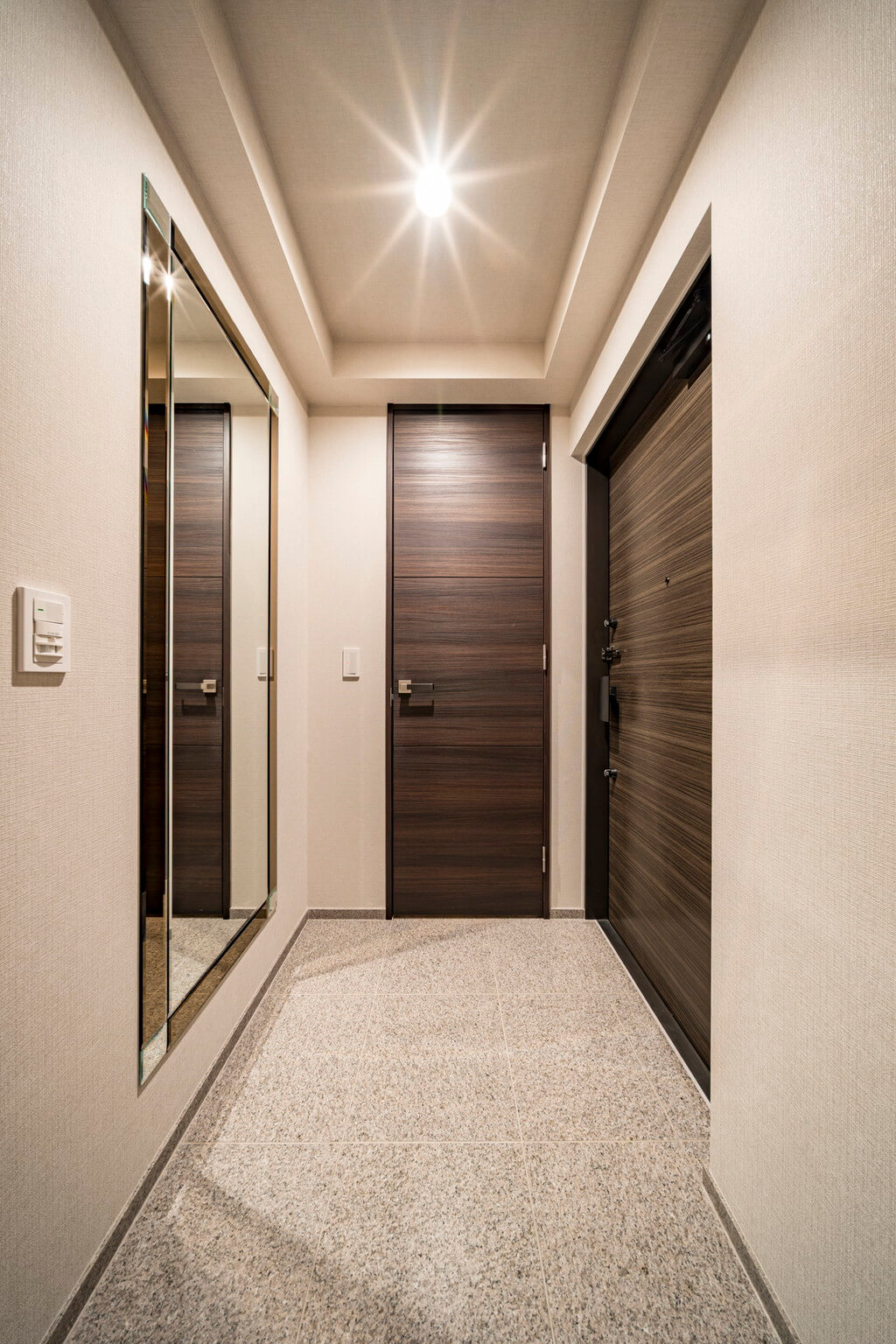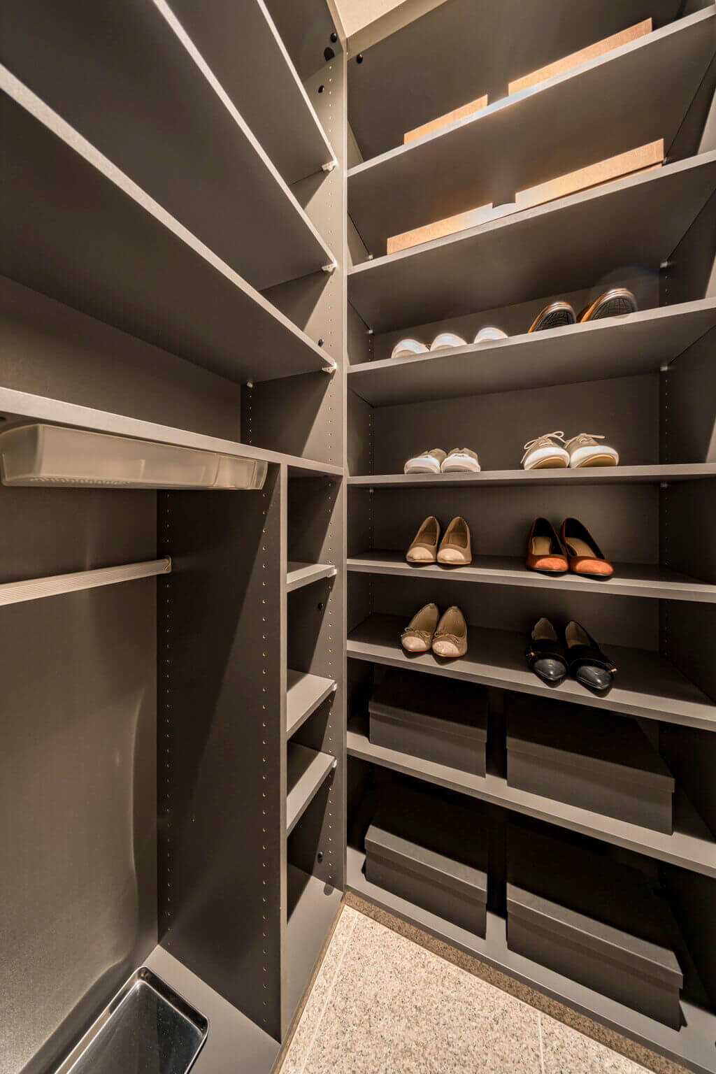 玄関にはSIC(シューズインクローゼット)が付いていて、たくさんの靴はもちろん、スポーツ用品なども収納できそうな広さです。姿見も付いていて、お出かけ前の身だしなみチェックもできますね。