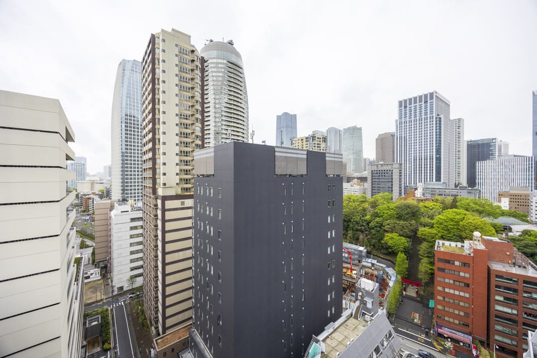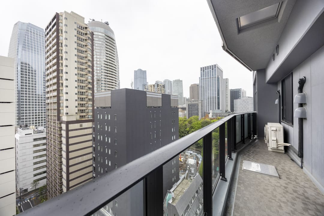 約9.55㎡のバルコニーは、南西向きのため日当たりが良好です。ゆとりがあるので、チェアなどを置いてほっと一息おいても◎。17階部分のため、目の前には抜け感のある眺望が広がっています。都会的なビル群の中に、愛宕神社の鳥居や緑が望めて四季も感じることができますよ。